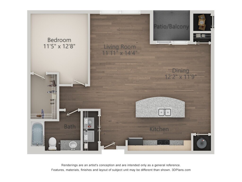 1 Dormitorio, 1.5 Baños, 1202 pies²El más grandeEsta opción tiene las unidades más grandes para este modeloGalería del Modelo