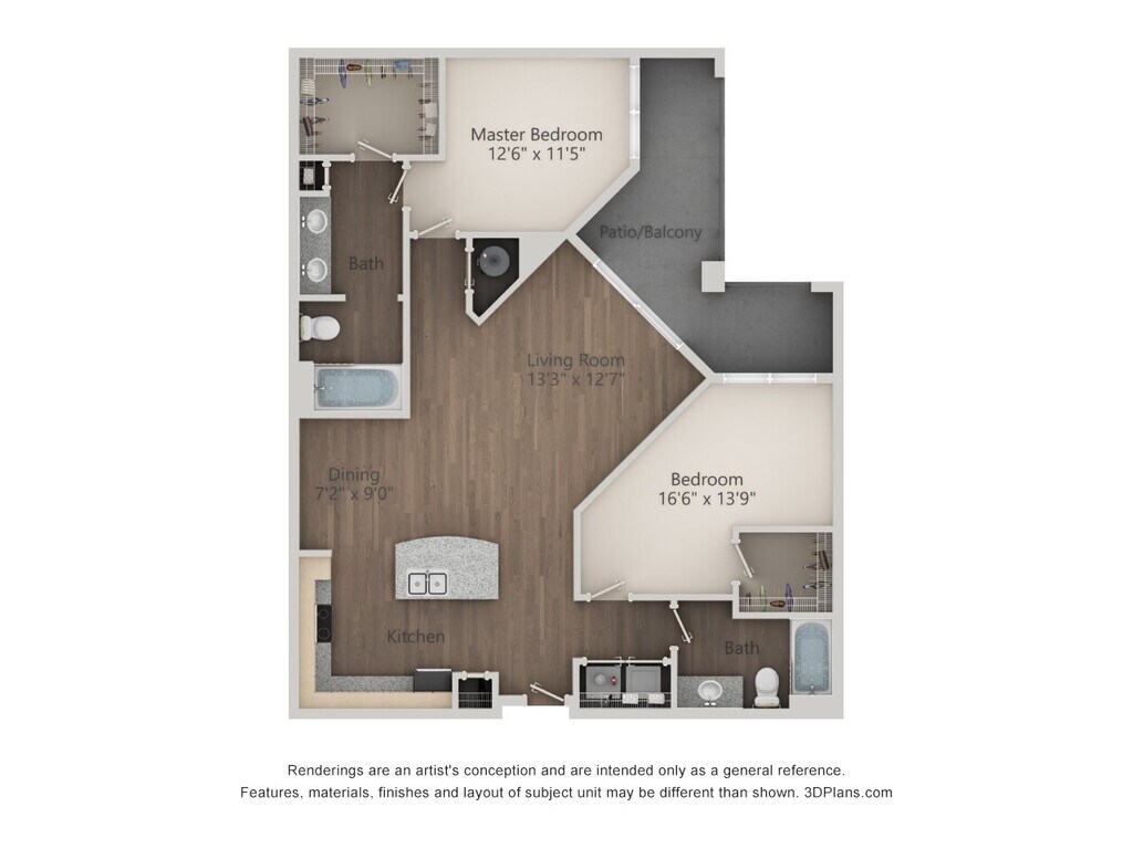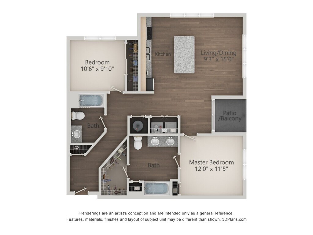 2 Dormitorios, 2 Baños, 1119 pies²Galería del Modelo