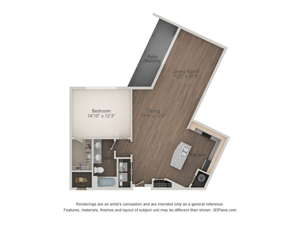 1 Dormitorio, 1 Baño, 1004 pies²Galería del Modelo