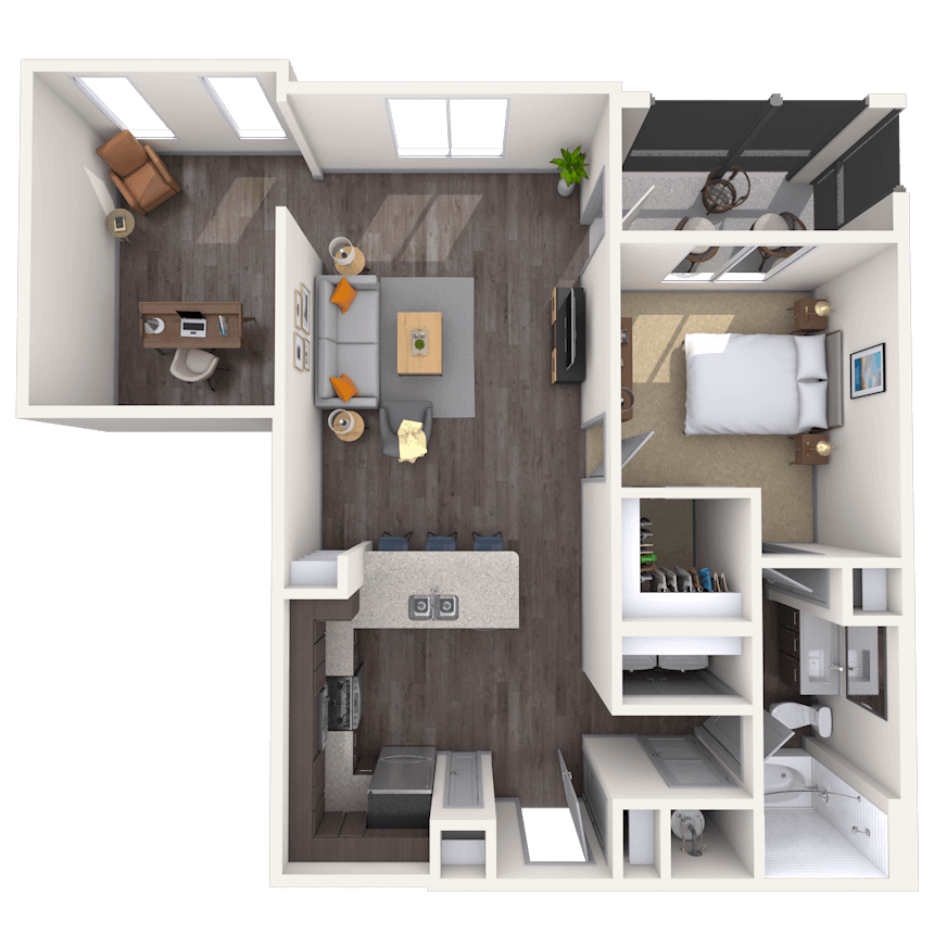 1 Dormitorio, 1 Baño, 802 pies²Disponible AhoraGalería del Modelo