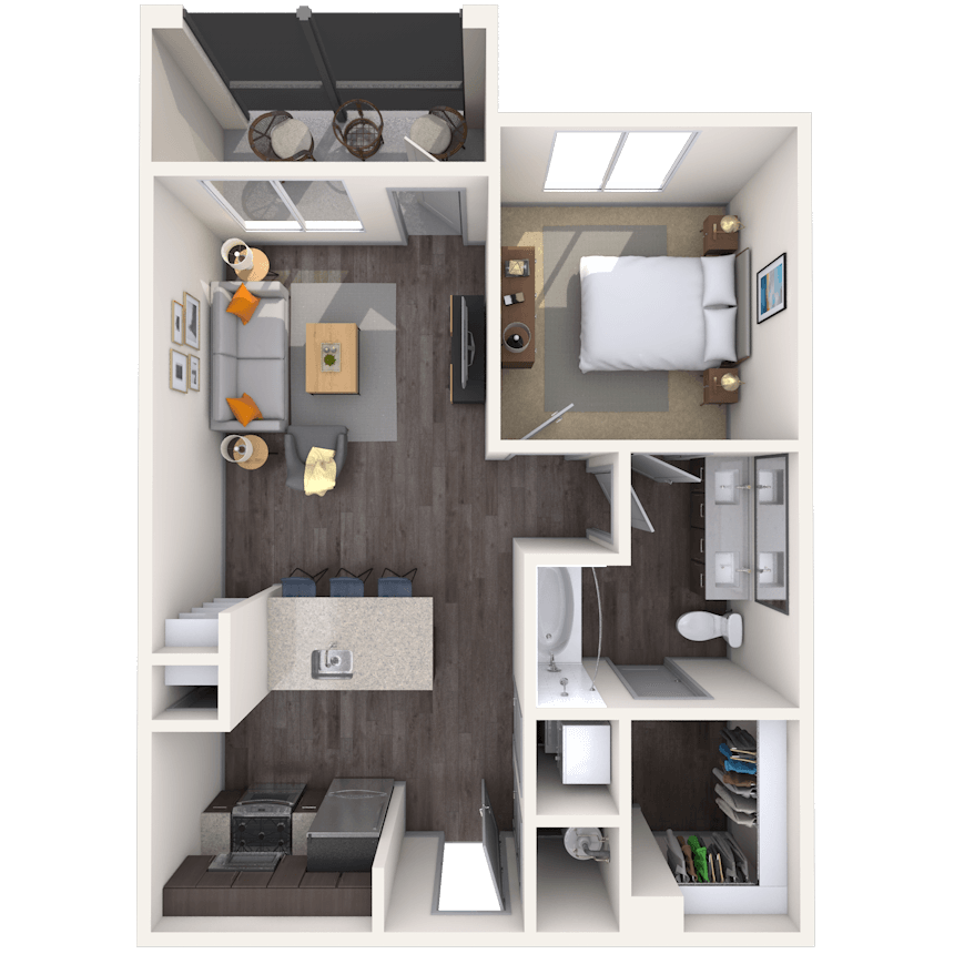 1 Dormitorio, 1 Baño, 618 pies²Disponible AhoraGalería del Modelo