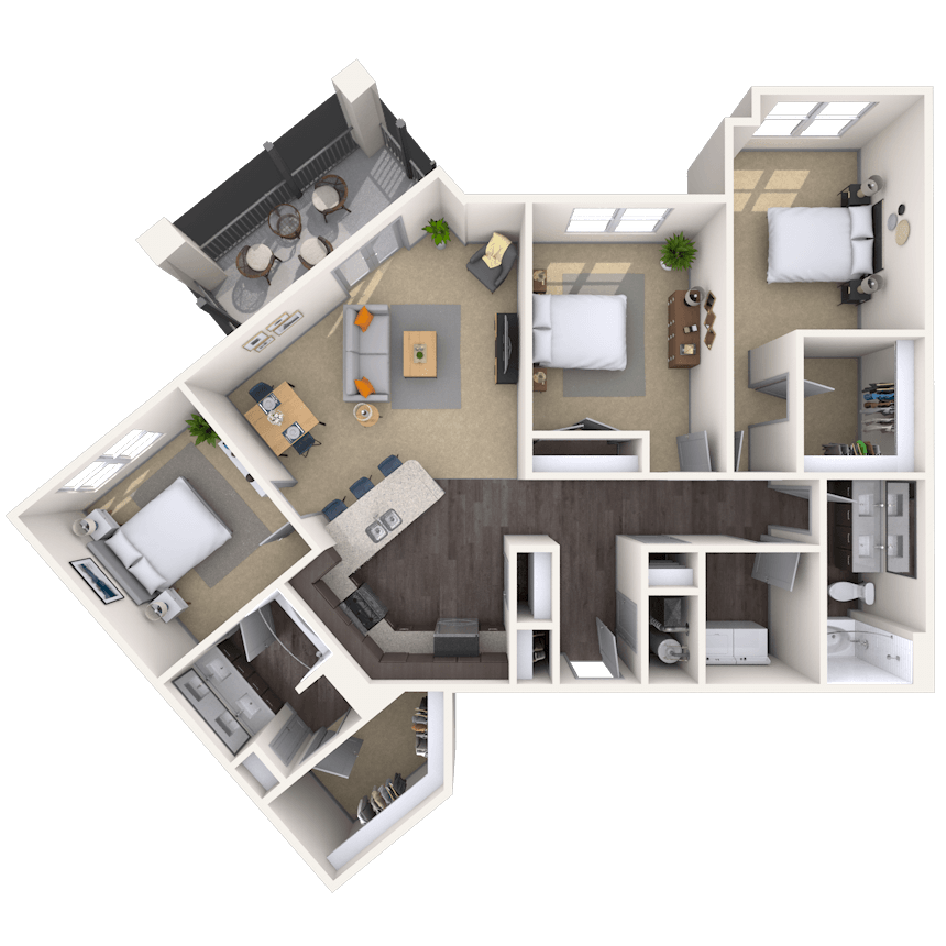 Modelo de apartamento: HugerDesde $1,8451 Dormitorio, 1 Baño, 733 sq ftDisponible Ahora![]()