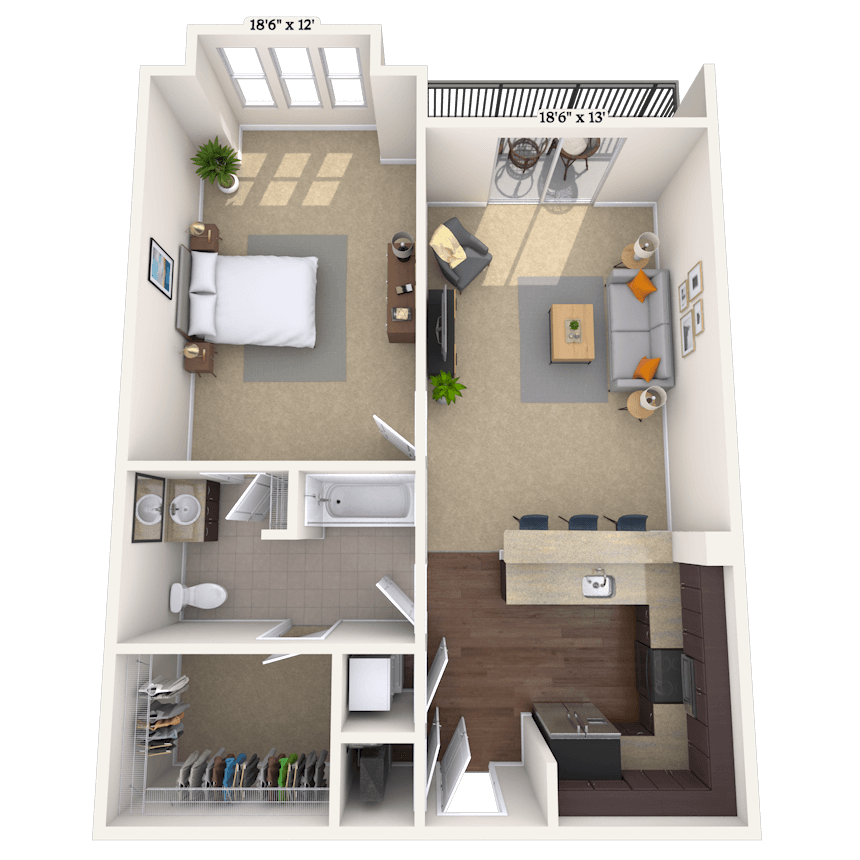 Estudio, 1 Baño, 597-600 pies²Disponible AhoraGalería del Modelo
