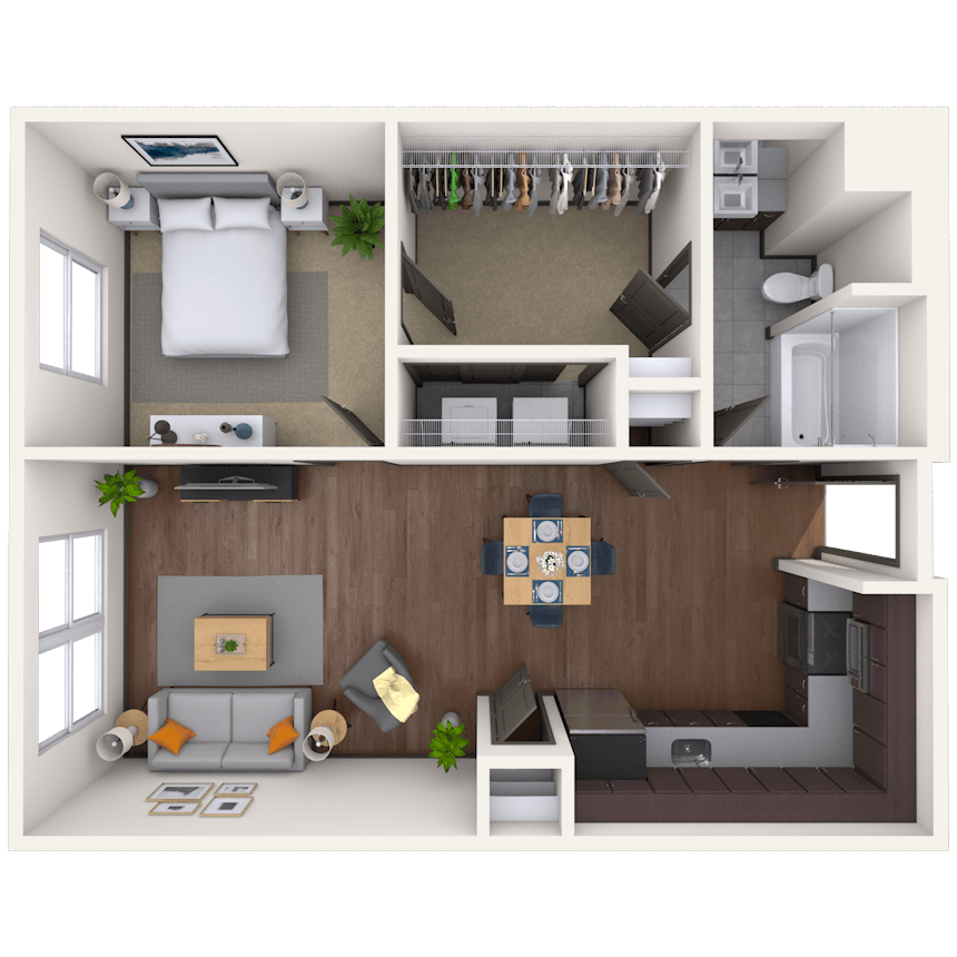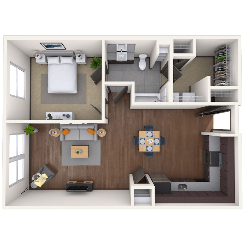1 Dormitorio, 1 Baño, 787 pies²Disponible AhoraGalería del Modelo