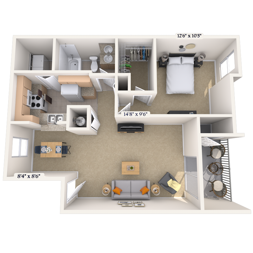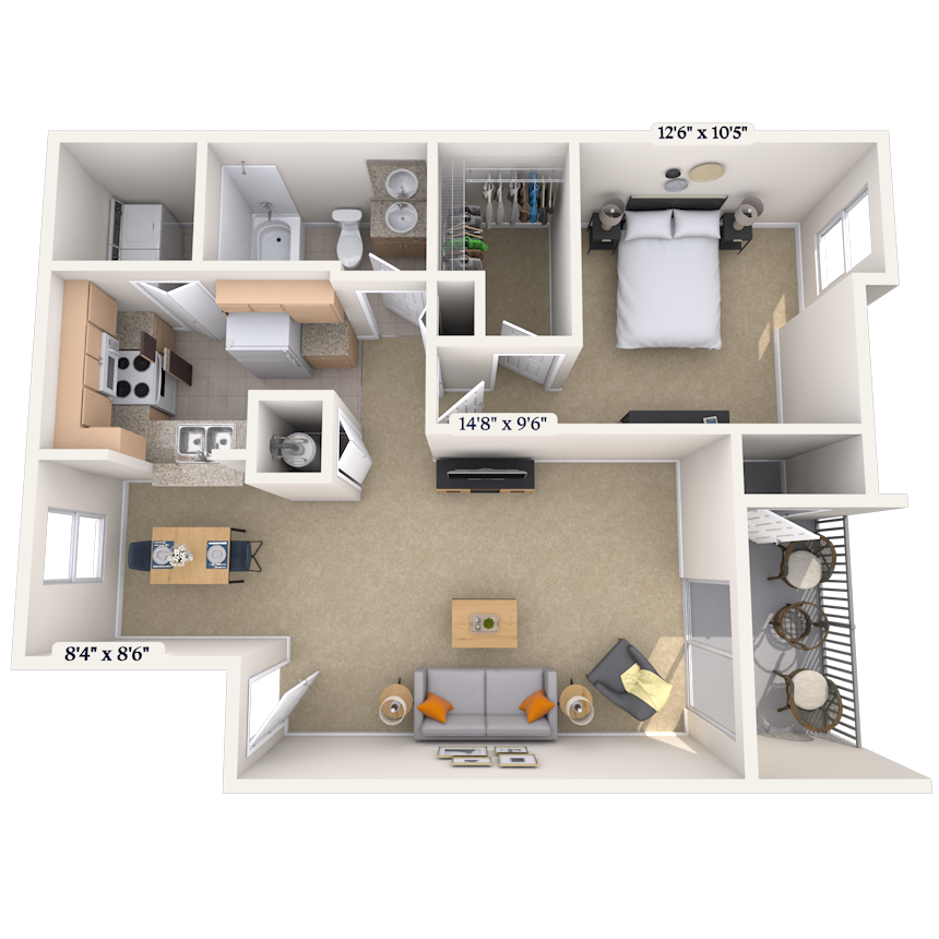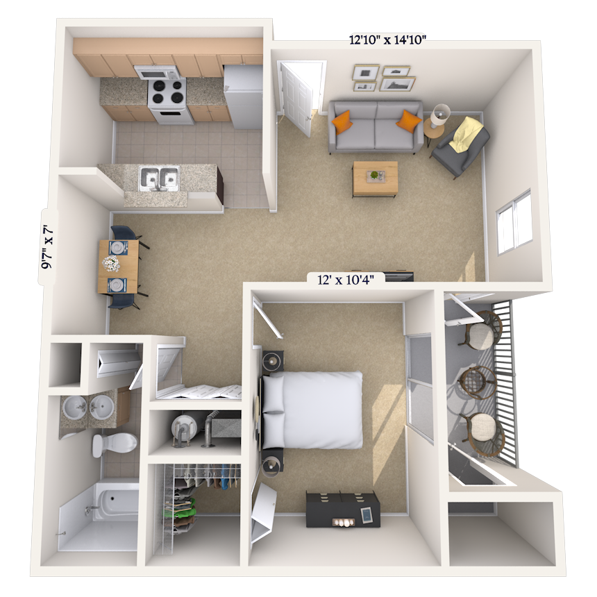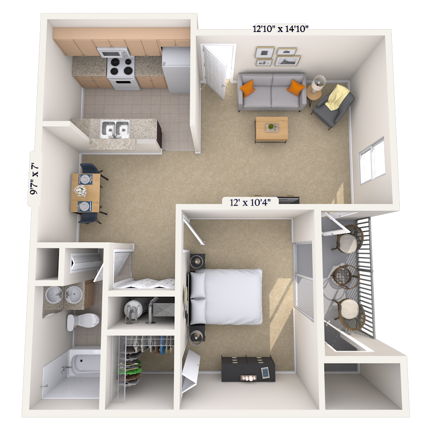 1 Dormitorio, 1 Baño, 800 pies²Disponible Oct 10El más grandeEsta opción tiene las unidades más grandes para este modeloDetalles de Diponibilidad