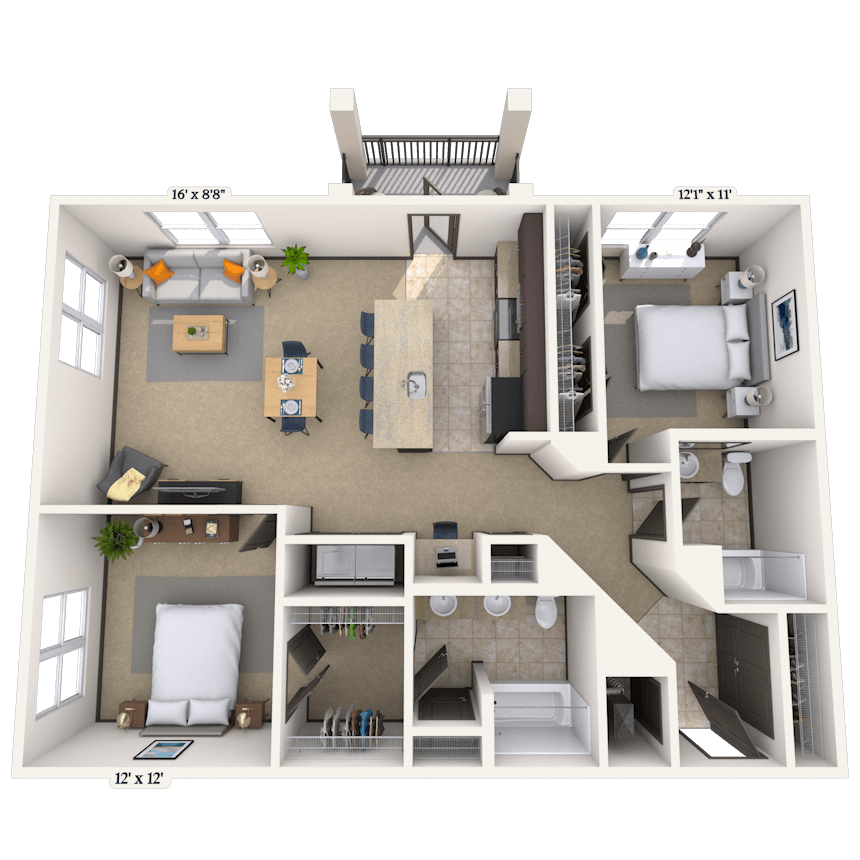 1 Dormitorio, 1 Baño, 725 pies²Disponible AhoraGalería del Modelo