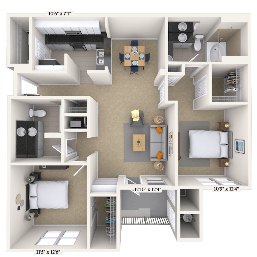 Modelo de apartamento: Traditional 2x2 1113-1253 SFDesde $2,0002 Dormitorios, 2 Baños, 1113-1171 sq ftDisponible Ahora![]()