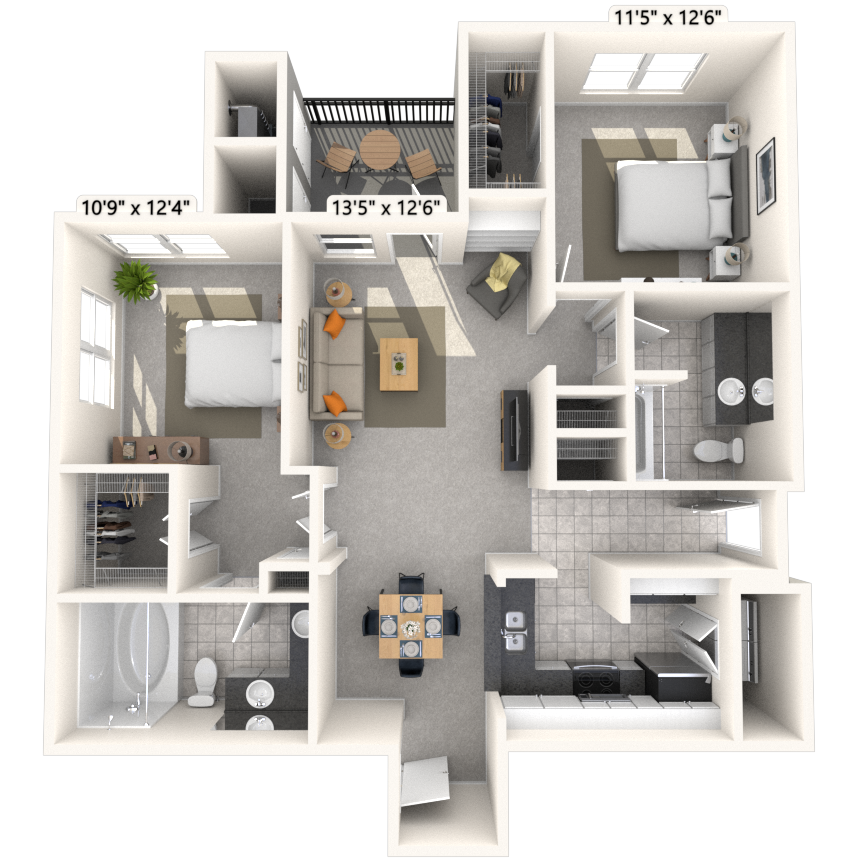 Traditional 2x2 1113-1253 SF - Plano 1 Unidad de apartamento: 7205Modelo de apartamento: Traditional 2x2 1113-1253 SF$2,0502 Dormitorios, 2 Baños, 1150 sq ftDisponible Ahora![]()