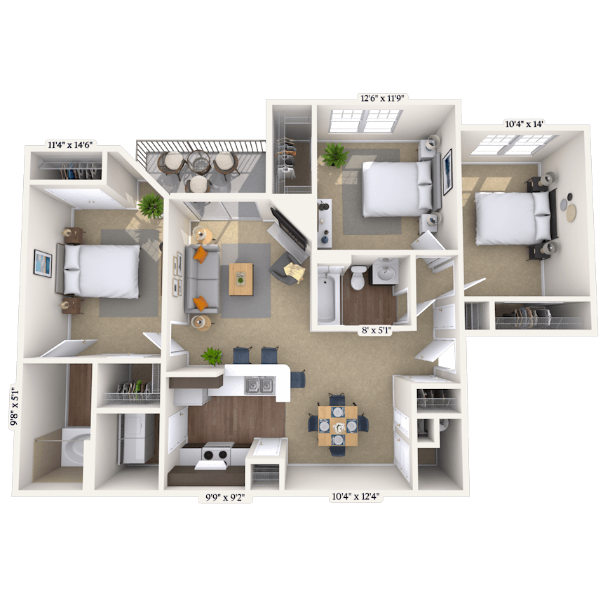 MAA Beaver Creek ofrece apartamentos de 1 a 3 Dormitorios desde $1,283 con 752–1,203 pies cuadrados. Aquí está el precio actual y la disponibilidad: