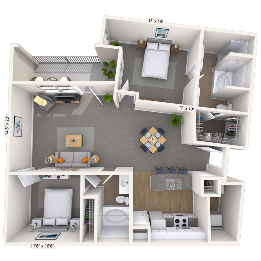 Modelo de apartamento: EldoraDesde $1,6171 Dormitorio, 1 Baño, 950 sq ftDisponible Ahora![]()