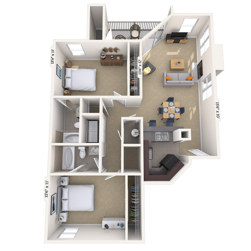 2 Dormitorios, 2 Baños, 1120 pies²Disponible AhoraDetalles de Diponibilidad