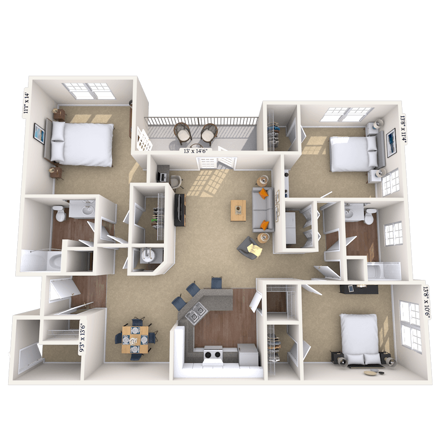 Modelo de apartamento: 11BDesde $1,4081 Dormitorio, 1 Baño, 810 sq ftDisponible Ahora![]()