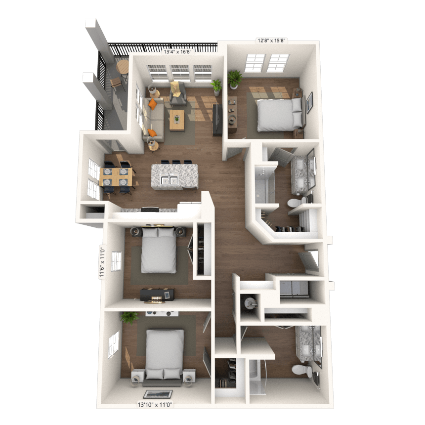 2 Dormitorios, 2 Baños, 1263 pies²Disponible AhoraEl más grandeEsta opción tiene las unidades más grandes para este modeloGalería del Modelo