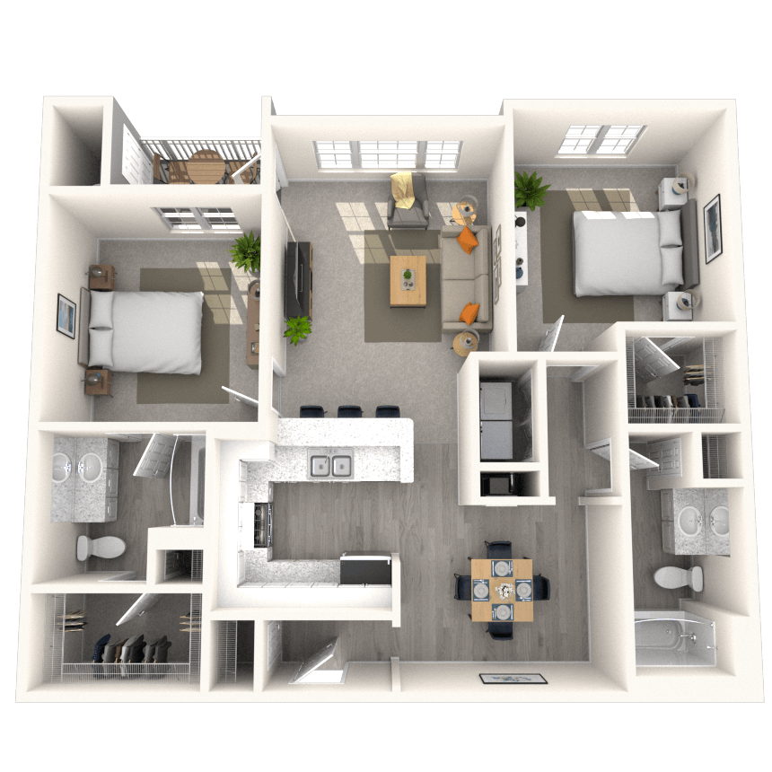 Modelo de apartamento: Traditional 1x1 882-899 SFDesde $1,5401 Dormitorio, 1 Baño, 882-899 sq ftDisponible Ahora![]()