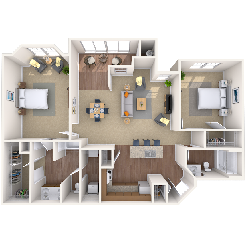 2 Dormitorios, 2 Baños, 970 pies²Disponible AhoraGalería del Modelo