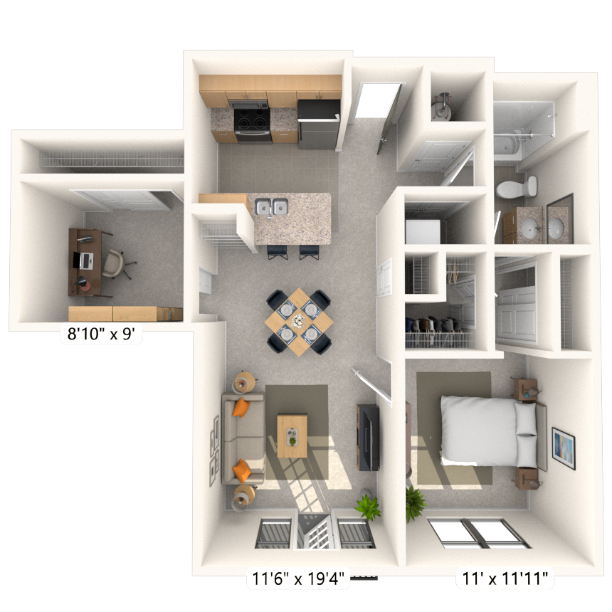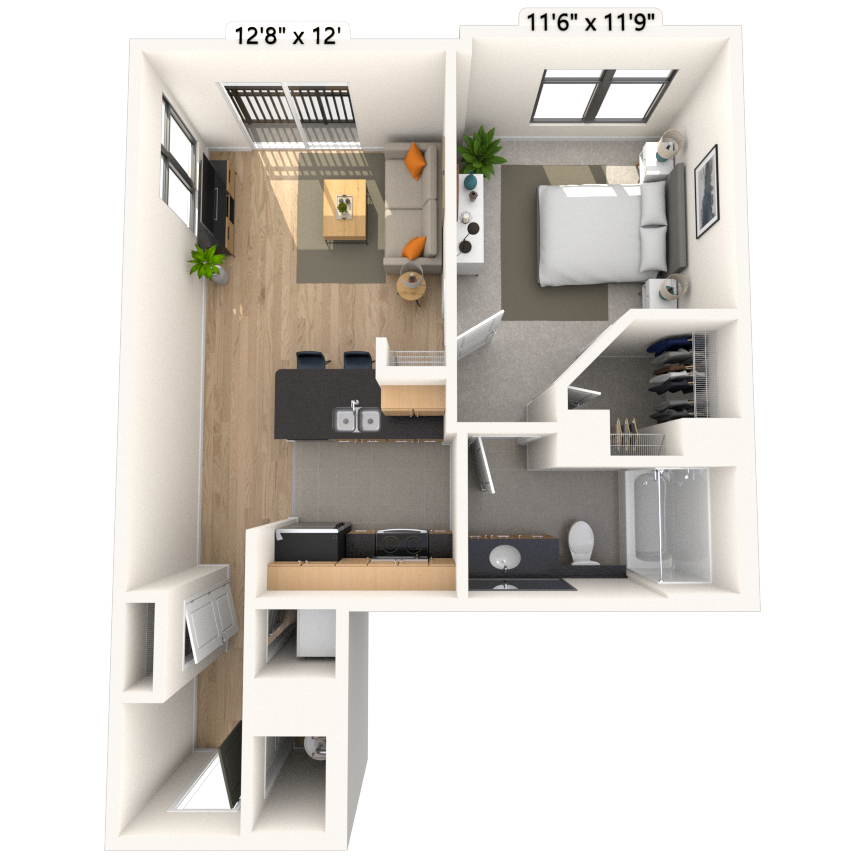 Modelo de apartamento: Studio 0x1 513 SFDesde $1,860Estudio, 1 Baño, 513 sq ftDisponible November 29, 2025![]()