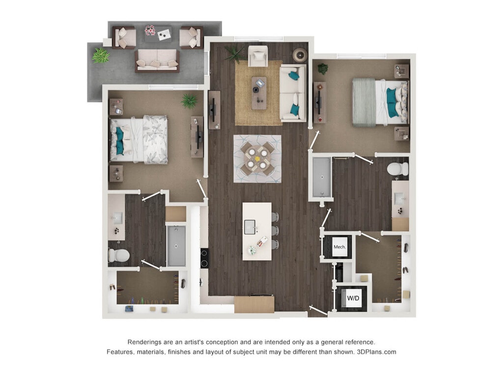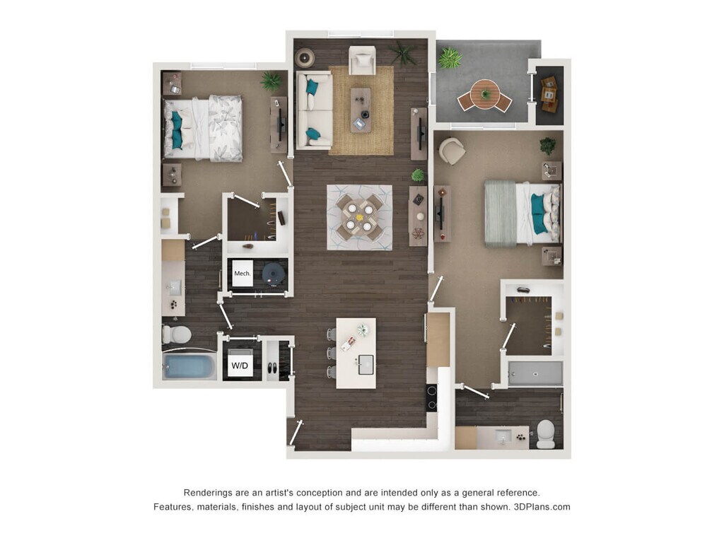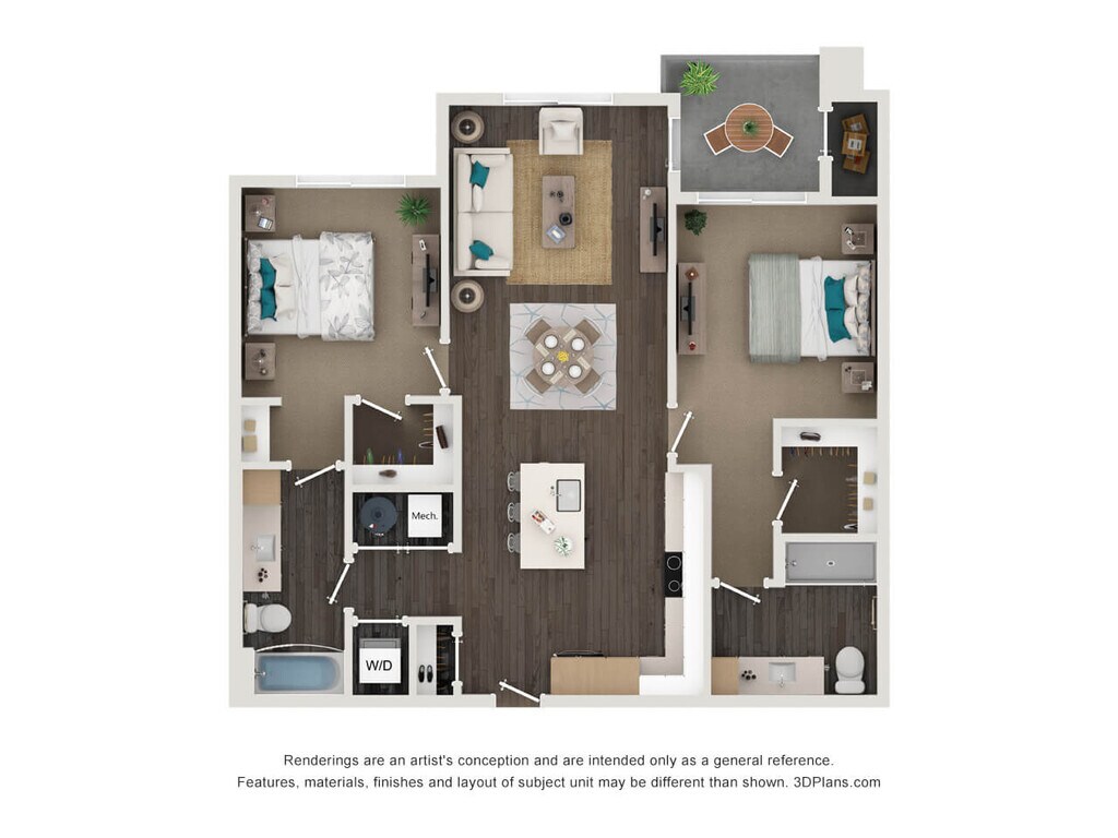 Modelo de apartamento: A1D 1x1 716 SFDesde $1,4981 Dormitorio, 1 Baño, 716 sq ftDisponible Ahora![]()