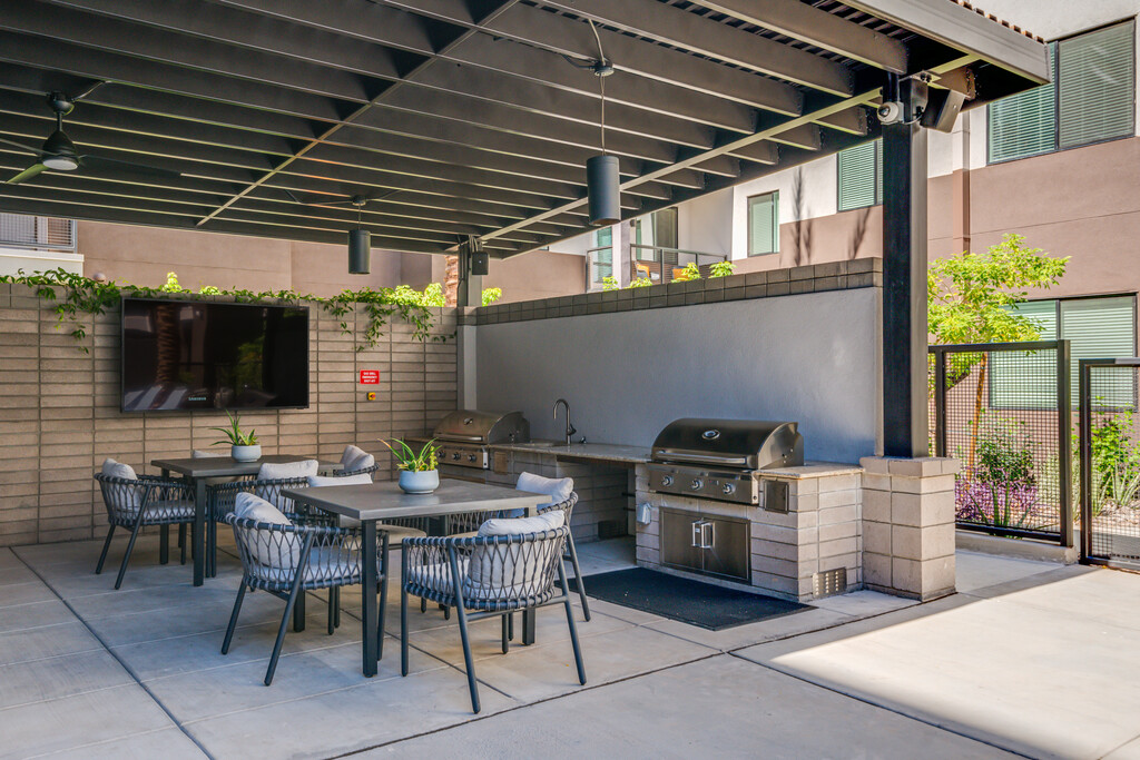 Nuestras comodidades cuidadosamente seleccionadas satisfacen las necesidades de estilos de vida activos y comprometidos, lo que hace que esta propiedad sea un destino atractivo para residentes y visitantes por igual. Sumérgete en el elegante ambiente de alto diseño que define MAA Central Ave. Desde las áreas al aire libre meticulosamente jardinizadas hasta nuestro exclusivo salón en la azotea, que ofrece impresionantes vistas de Camelback Mountain, cada detalle ha sido cuidadosamente seleccionado para mejorar tu experiencia de vida. Nuestra propiedad ofrece la comodidad adicional de estaciones de carga para vehículos eléctricos y una piscina de varios niveles, lo que garantiza que tu estilo de vida moderno esté completamente adaptado. Ven y sumérgete en la verdadera esencia de la vida en Phoenix en MAA Central Ave.