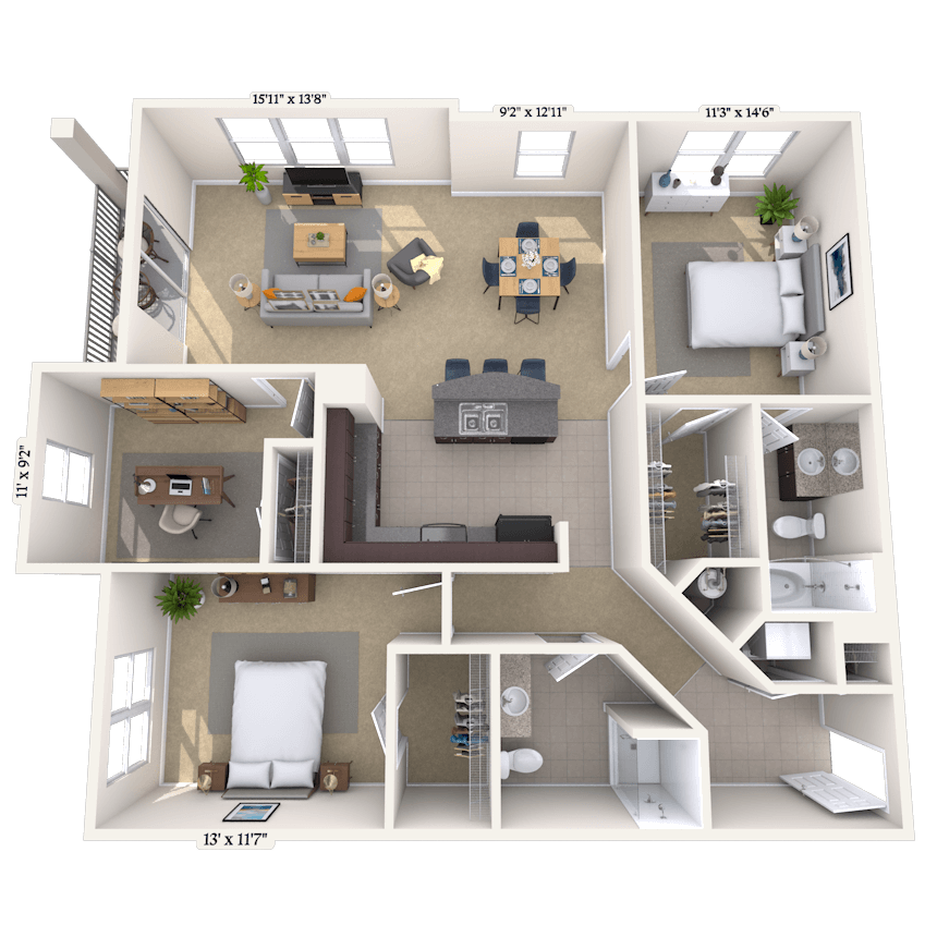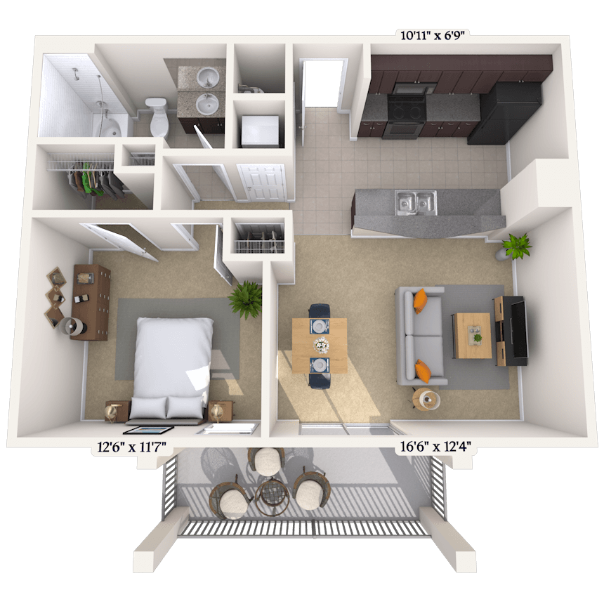 Modelo de apartamento: The CarolineDesde $1,8231 Dormitorio, 1 Baño, 680 sq ftDisponible Ahora![]()