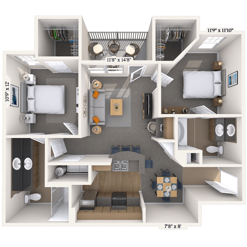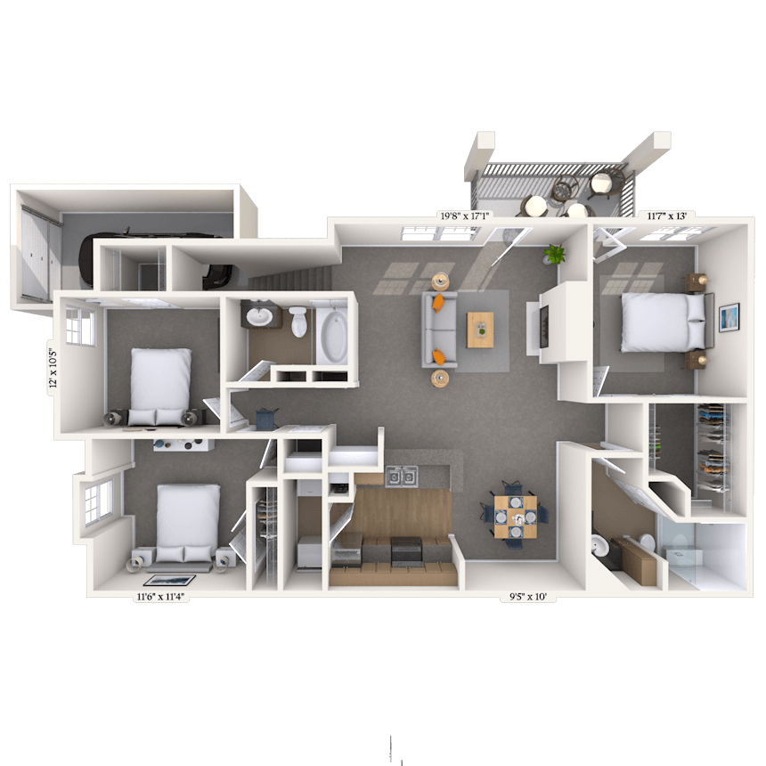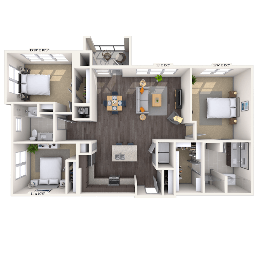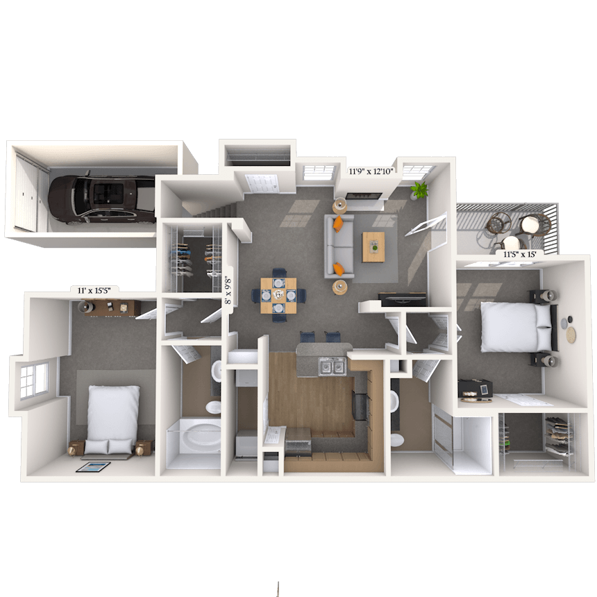 Modelo de apartamento: The TownsendDesde $1,4831 Dormitorio, 1 Baño, 810 sq ftDisponible Ahora![]()