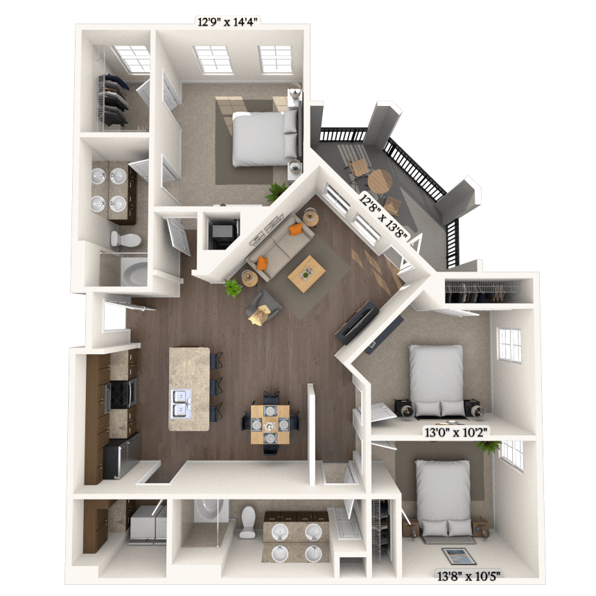 Modelo de apartamento: Traditional 1x1 837 SFDesde $1,7501 Dormitorio, 1 Baño, 837 sq ftDisponible Ahora![]()