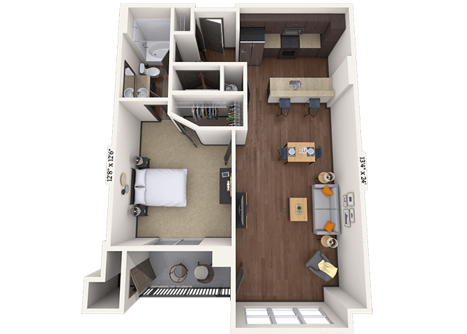 1 Dormitorio, 1 Baño, 766-840 pies²Disponible AhoraGalería del Modelo