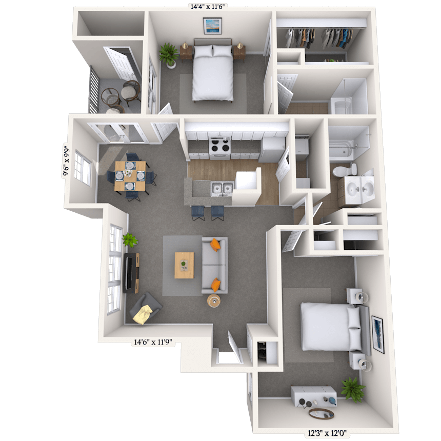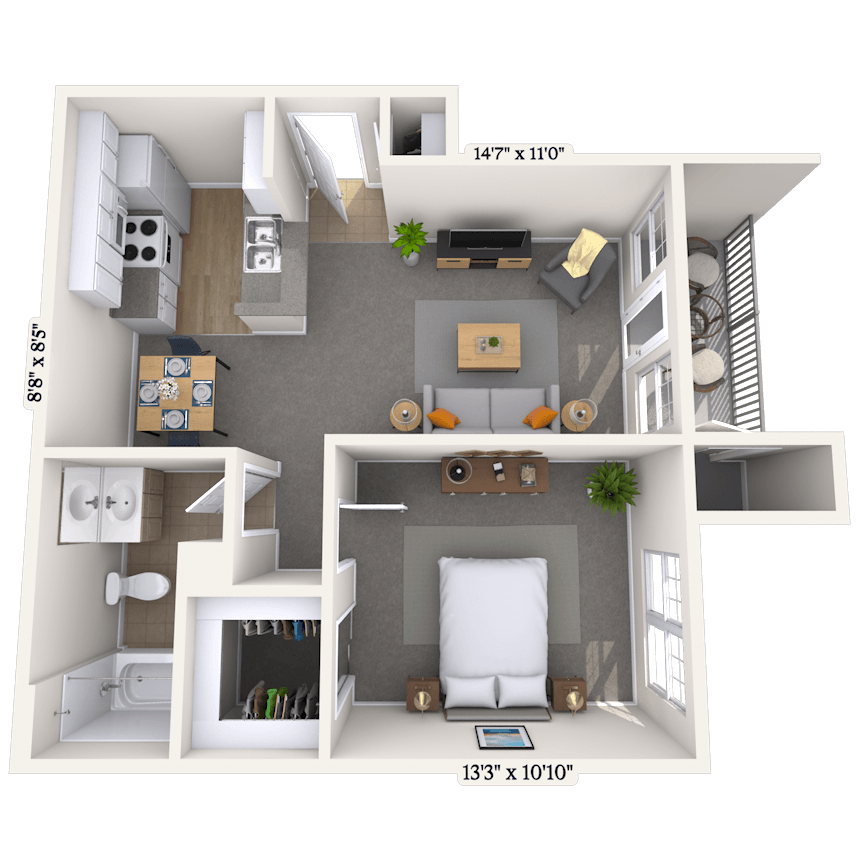 1 Dormitorio, 1 Baño, 906 pies²Disponible AhoraEl más grandeEsta opción tiene las unidades más grandes para este modeloGalería del Modelo