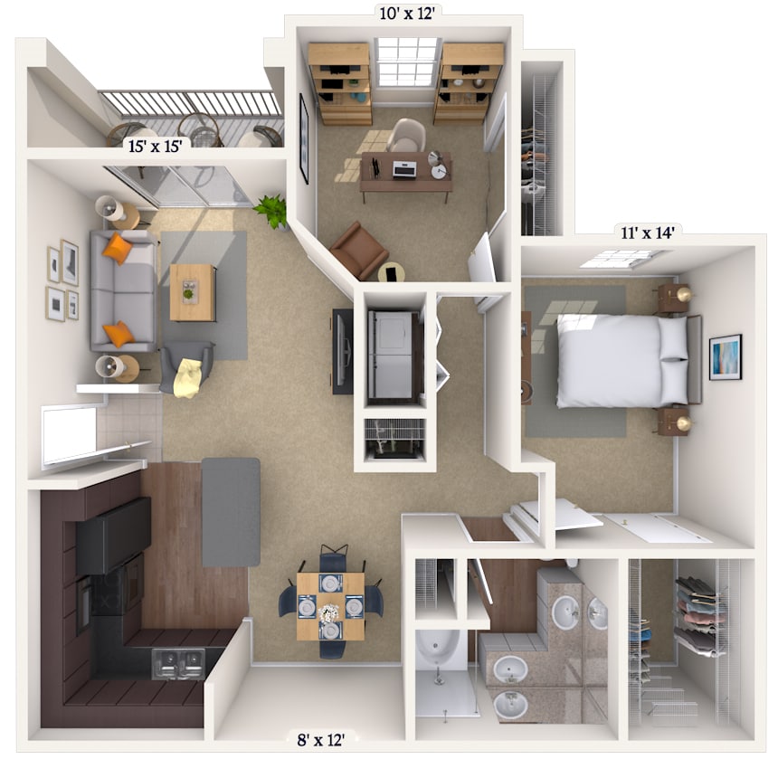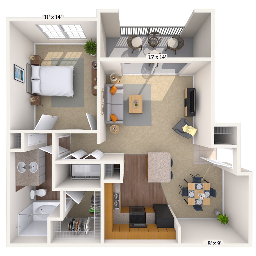 Unidad de apartamento: 111124Modelo de apartamento: Alpine$1,2031 Dormitorio, 1 Baño, 760 sq ftDisponible Ahora![]()
