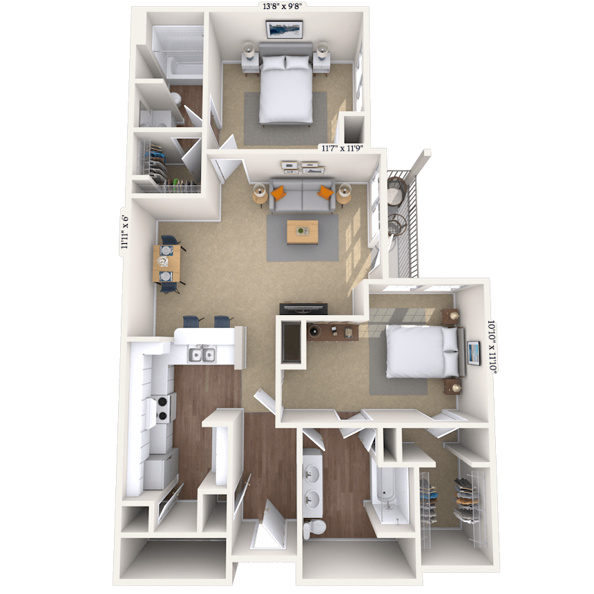 1 Dormitorio, 1 Baño, 799-814 pies²Disponible AhoraGalería del Modelo