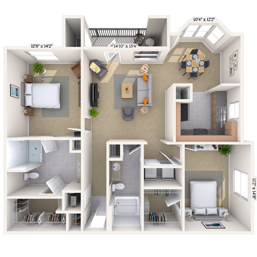 Modelo de apartamento: CedarDesde $1,3131 Dormitorio, 1 Baño, 750 sq ftDisponible December 29, 2025![]()