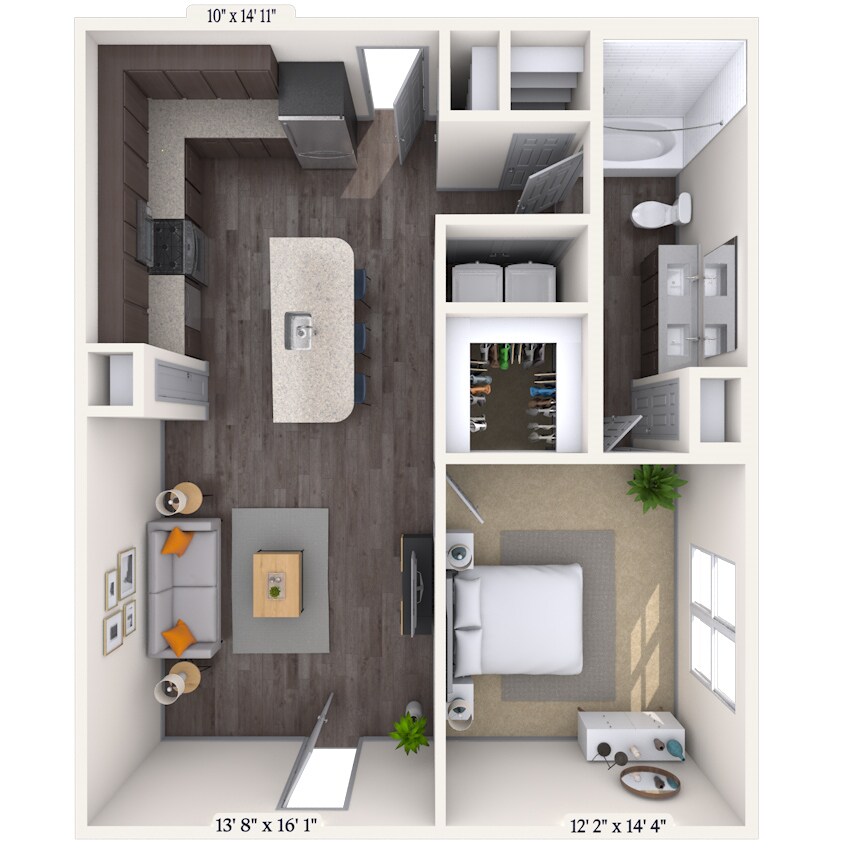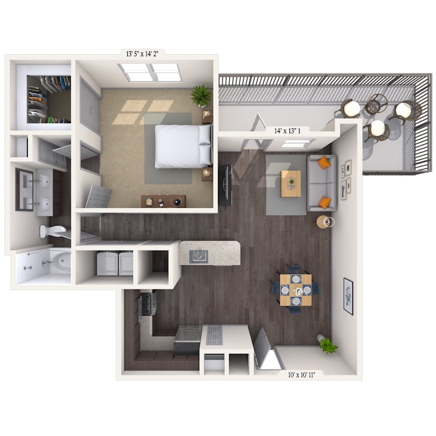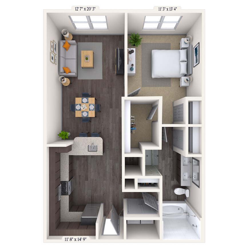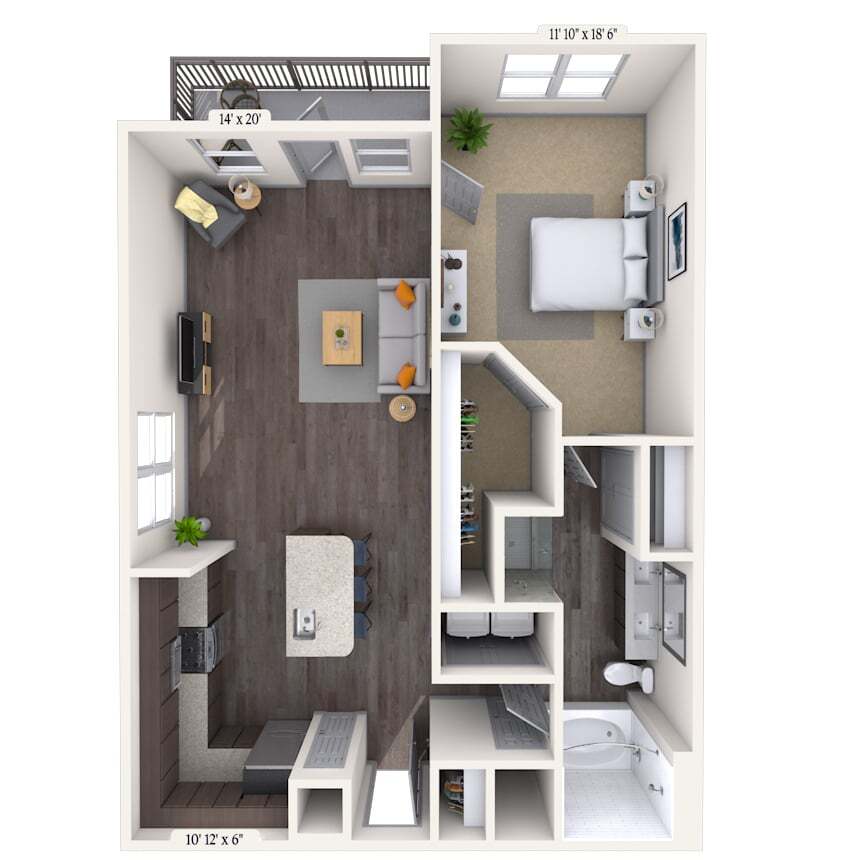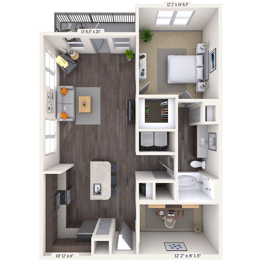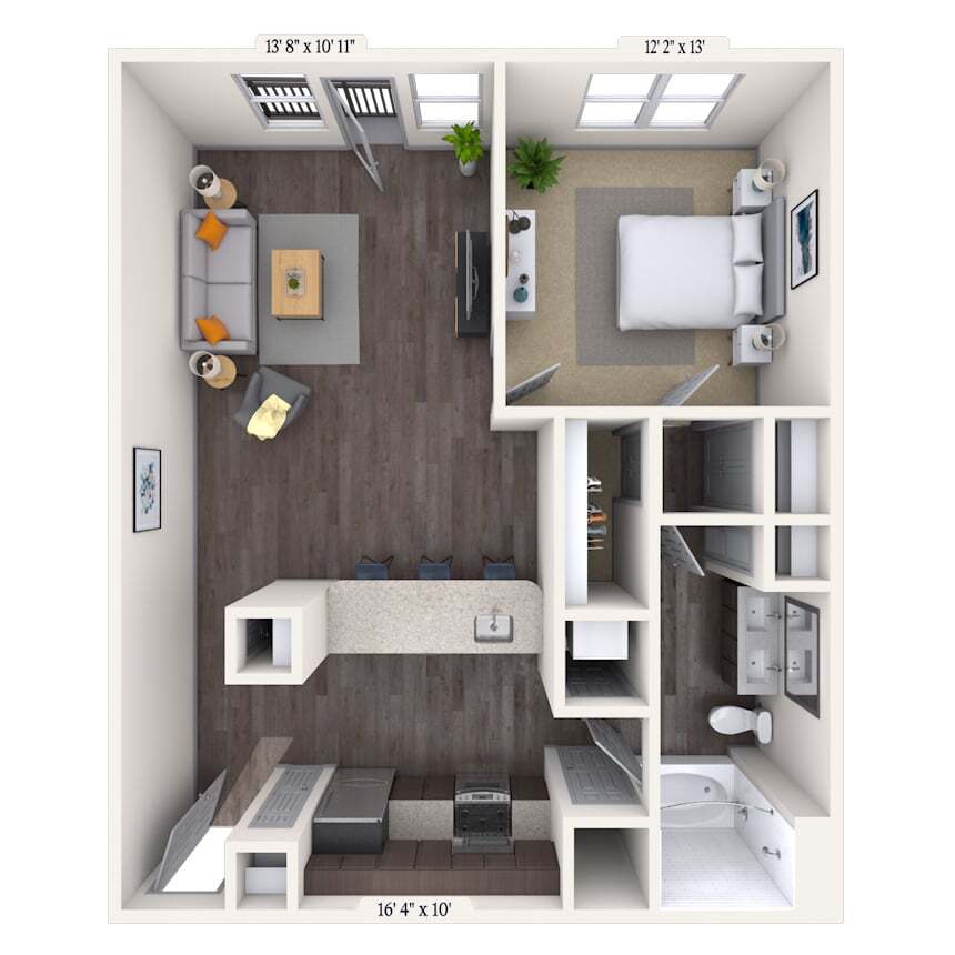 1 Dormitorio, 1 Baño, 702-806 pies²Disponible AhoraGalería del Modelo