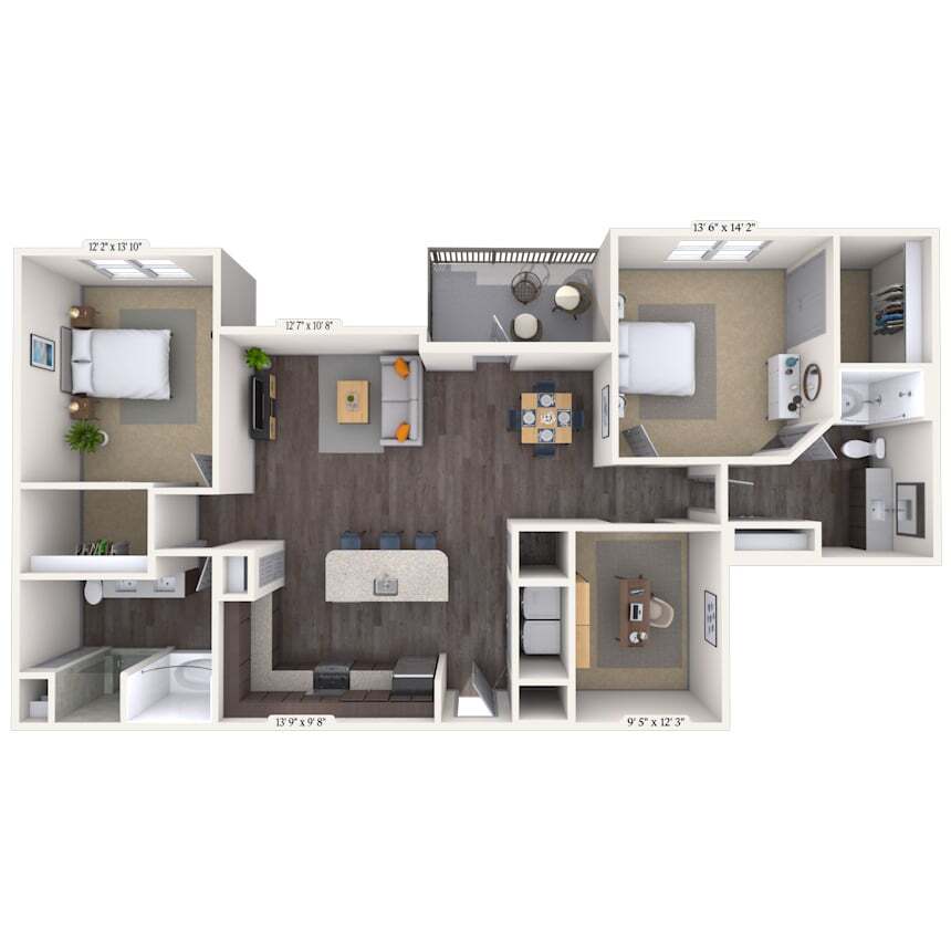 Unidad: 419 - Plano 1 Unidad de apartamento: 219Modelo de apartamento: Columbia$1,9281 Dormitorio, 1 Baño, 758 sq ftDisponible Ahora![]()