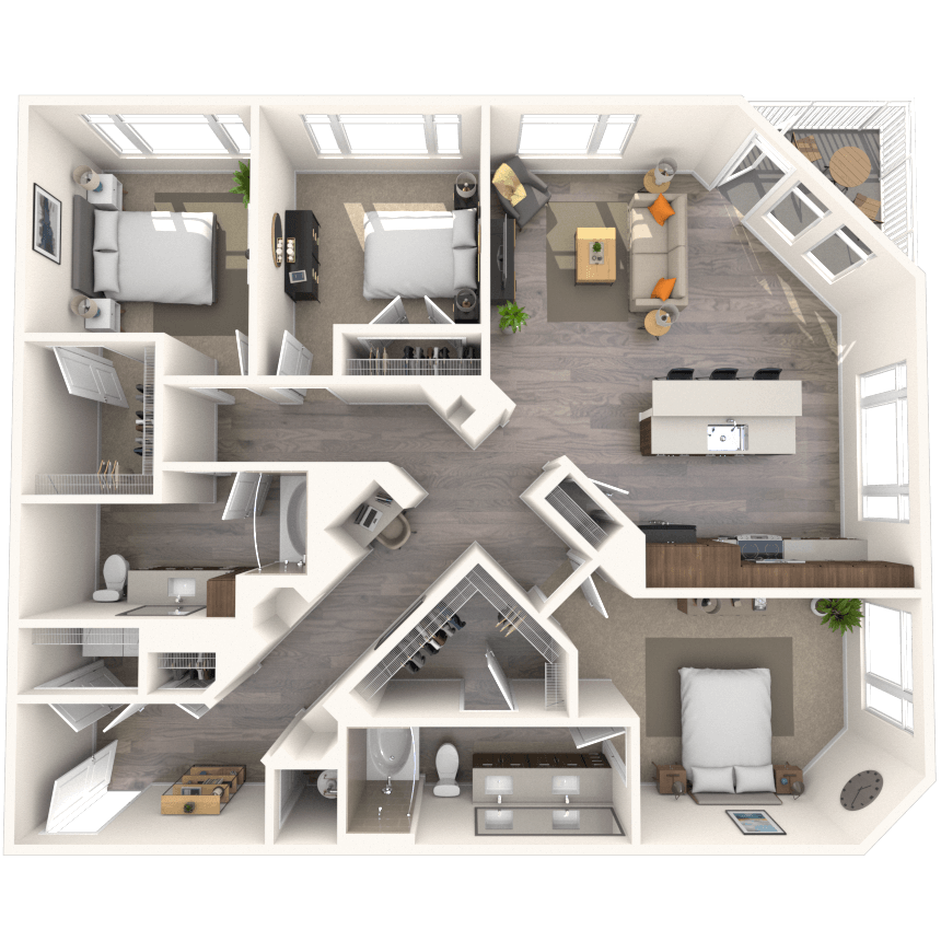 Modelo de apartamento: Traditional A1 1x1-728 SFDesde $1,6281 Dormitorio, 1 Baño, 728 sq ftDisponible Ahora![]()