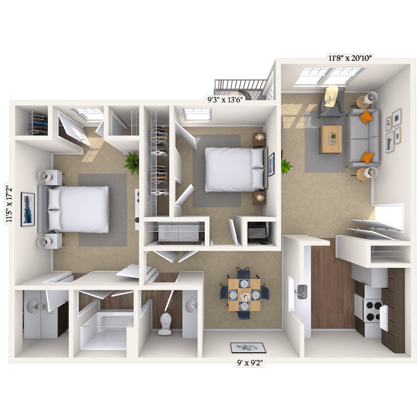 The Jasmine - Plano 1 Unidad de apartamento: 202016Modelo de apartamento: The Jasmine$913Estudio, 1 Baño, 476 sq ftDisponible Ahora![]()