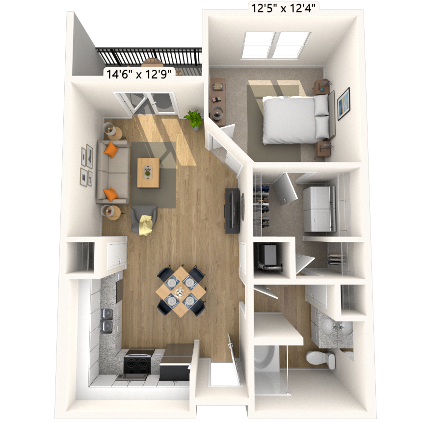 Modelo de apartamento: Studio 0x1 492-610 SFDesde $1,865Estudio, 1 Baño, 497-604 sq ftDisponible February 13, 2026![]()