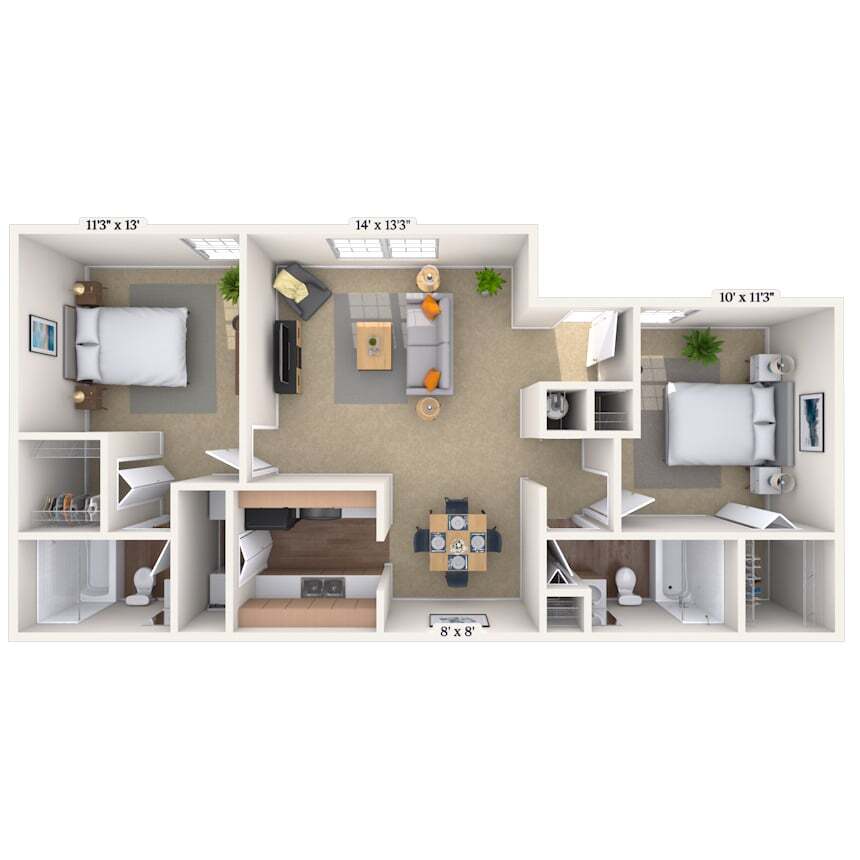 The Ashley - Plano 2 Unidad de apartamento: 131302Modelo de apartamento: The Ashley$1,0831 Dormitorio, 1 Baño, 850 sq ftDisponible Ahora![]()