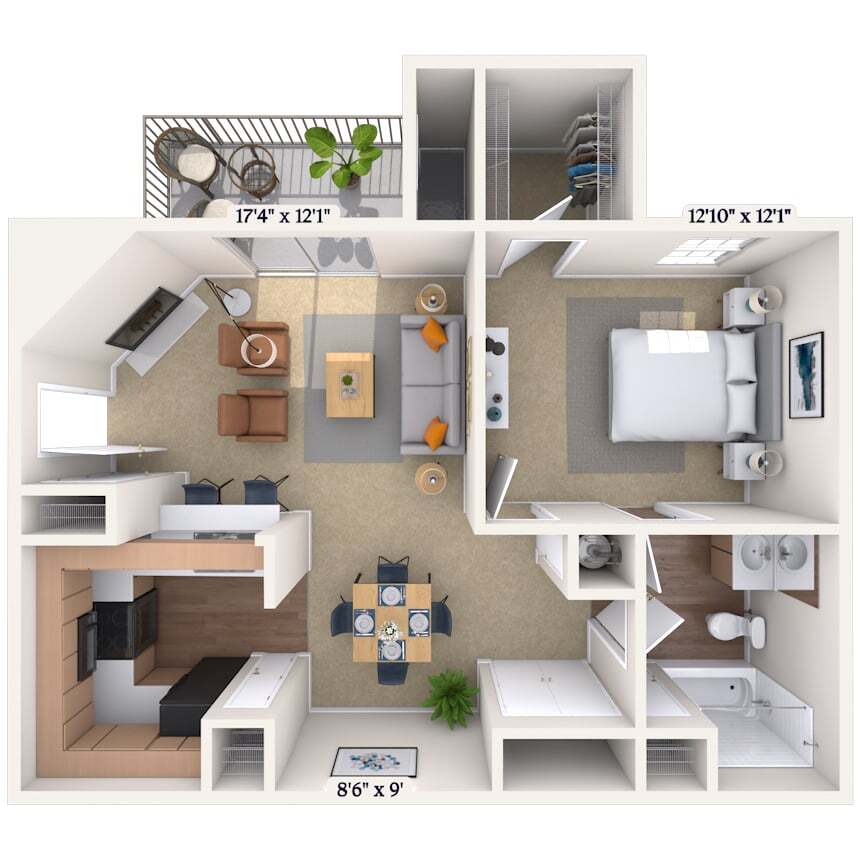 Unidad: 131302 - Plano 1 Unidad de apartamento: 141407Modelo de apartamento: 1 Bed, 1 bath$1,1781 Dormitorio, 1 Baño, 850 sq ftDisponible December 27, 2025![]()