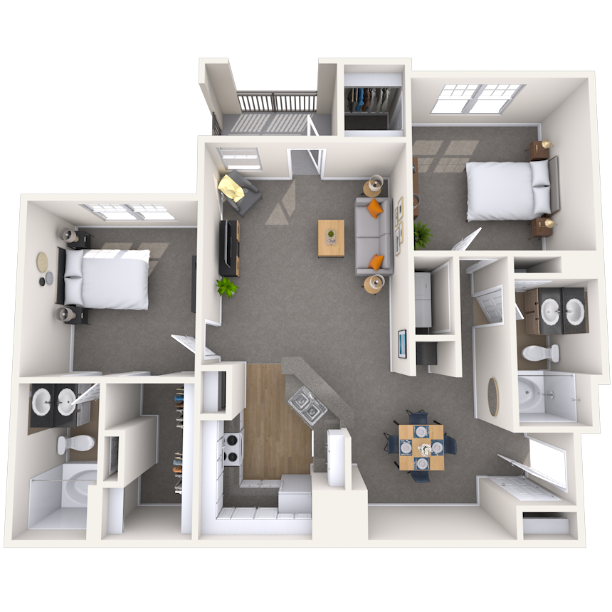 Modelo de apartamento: 22BDesde $2,1282 Dormitorios, 2 Baños, 1324 sq ftDisponible Ahora![]()