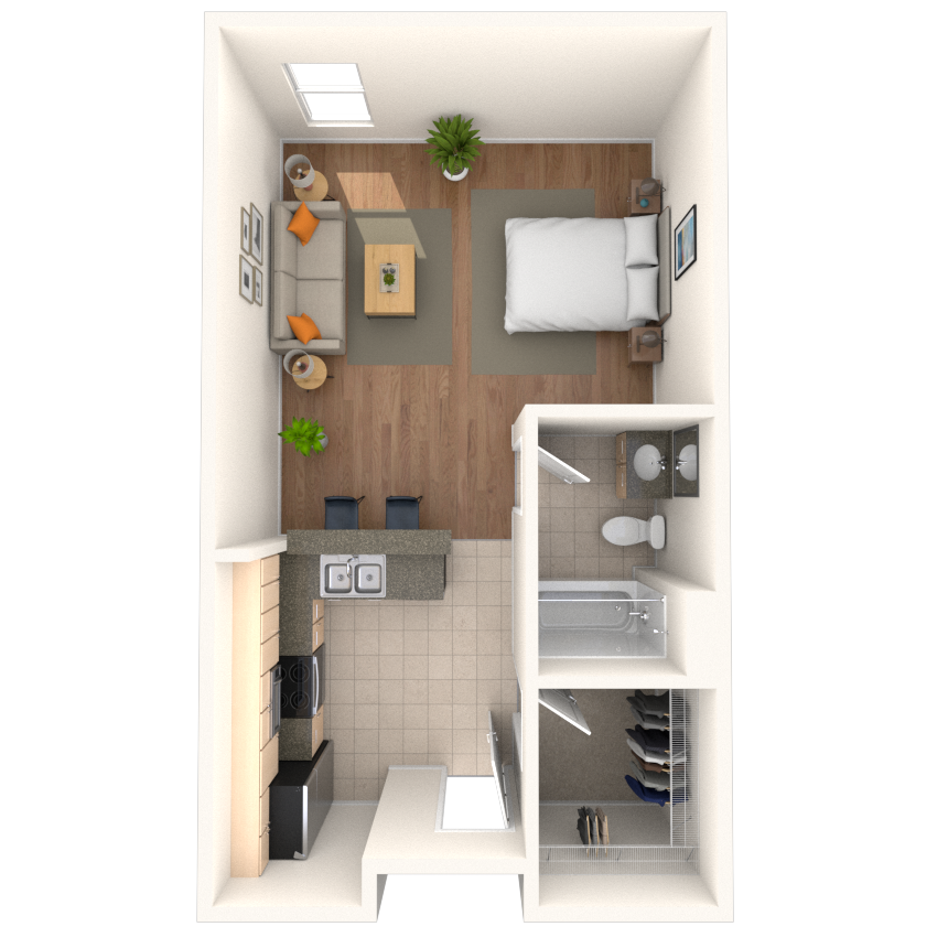 Estudio, 1 Baño, 817-843 pies²Disponible AhoraGalería del Modelo