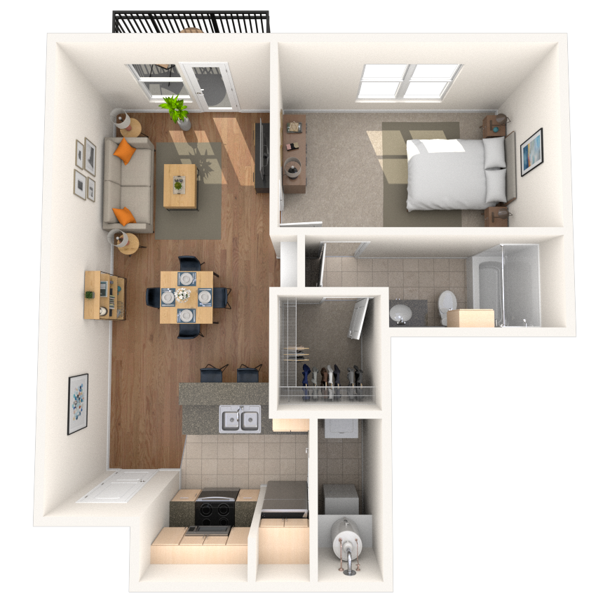 Estudio, 1 Baño, 978 pies²Disponible AhoraEl más grandeEsta opción tiene las unidades más grandes para este modeloGalería del Modelo