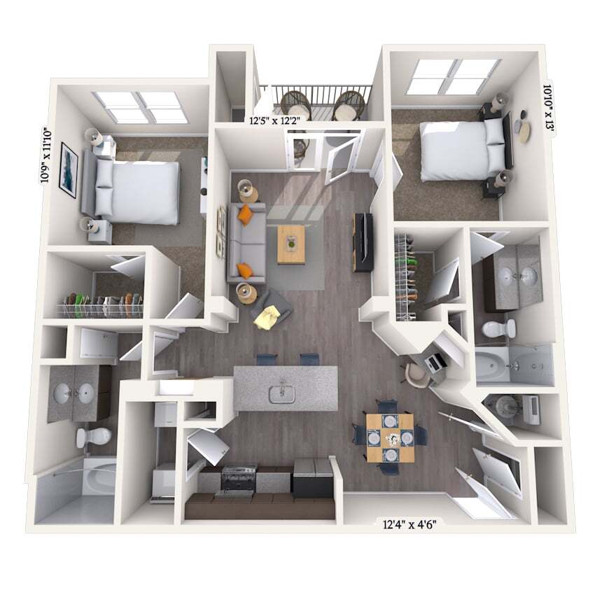 1 Dormitorio, 1 Baño, 871 pies²Disponible AhoraGalería del Modelo