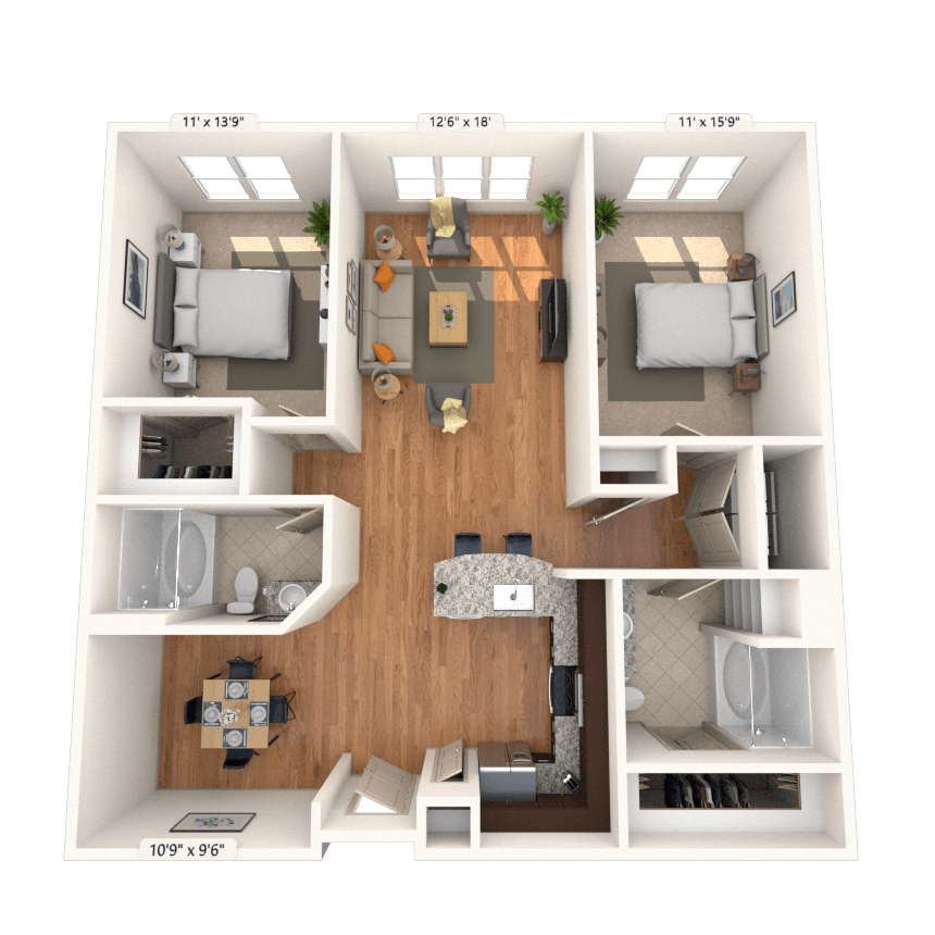 Modelo de apartamento: Traditional 1x1 747-846 SFDesde $1,8101 Dormitorio, 1 Baño, 747-822 sq ftDisponible Ahora![]()
