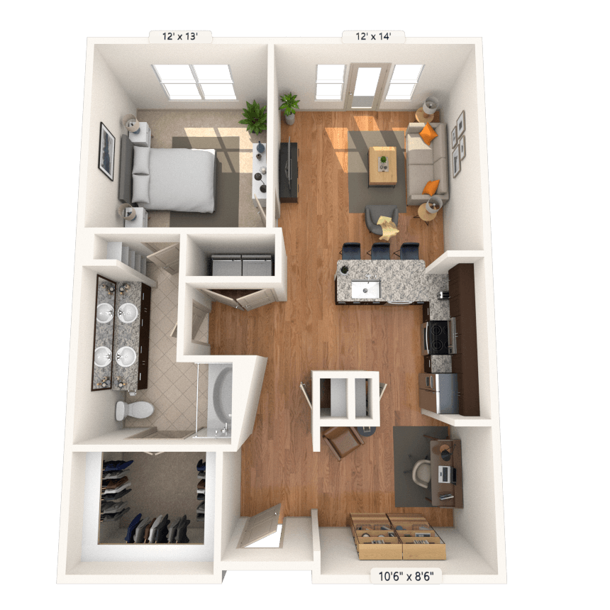 1 Dormitorio, 1 Baño, 747-822 pies²Disponible AhoraEl más baratoEsta opción tiene los precios más bajos para este modeloGalería del Modelo