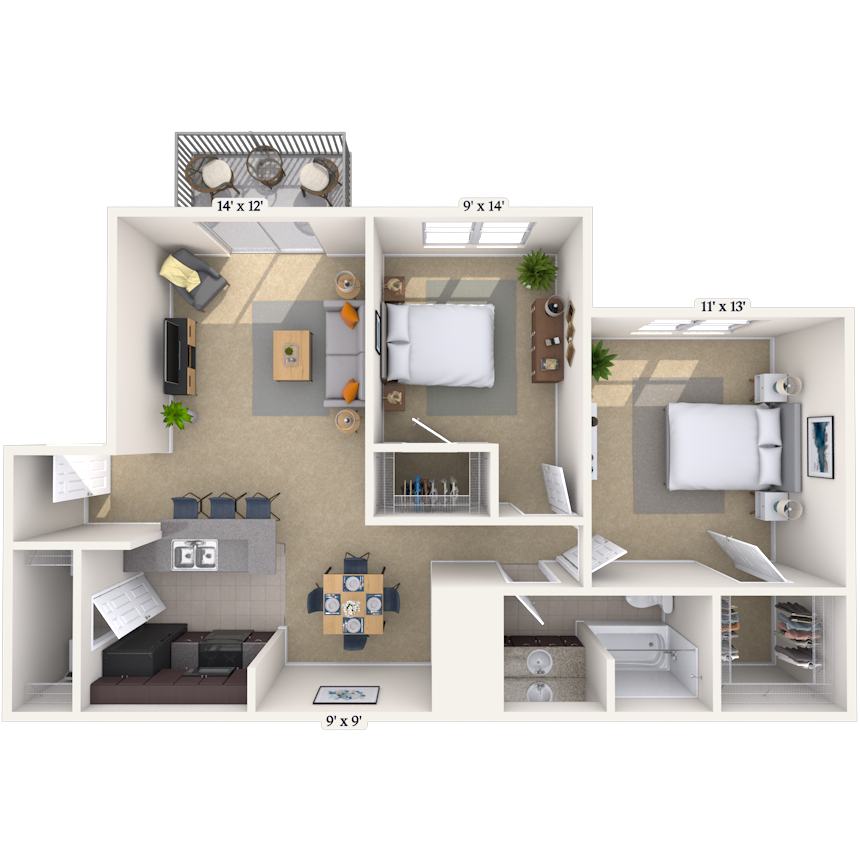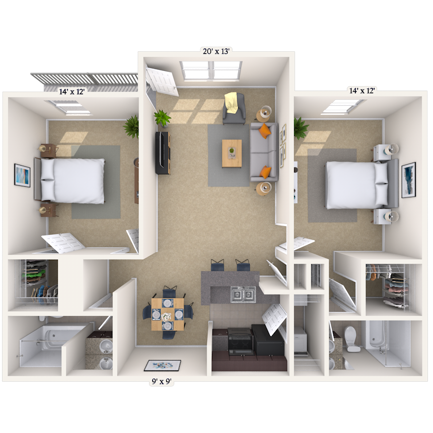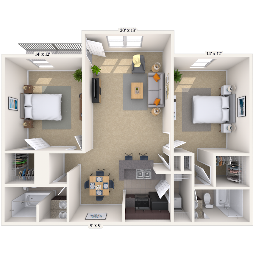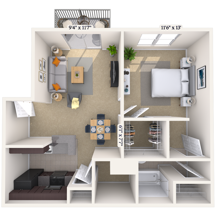 1 Dormitorio, 1 Baño, 832 pies²Disponible AhoraEl más grandeEsta opción tiene las unidades más grandes para este modeloGalería del Modelo
