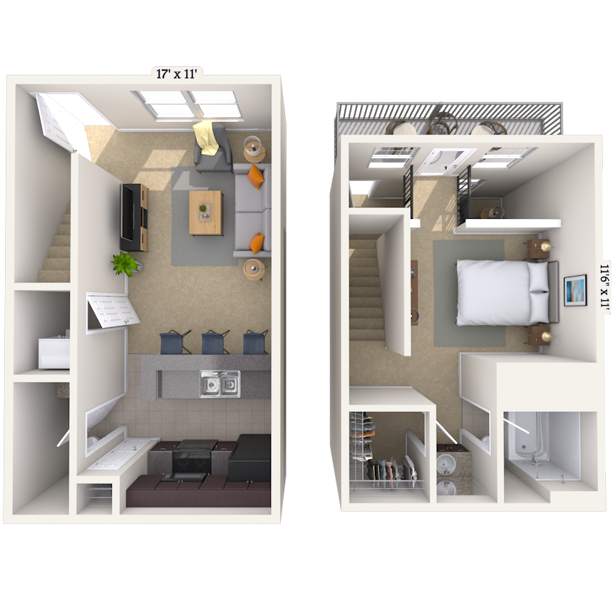 1 Dormitorio, 1 Baño, 735 pies²Disponible AhoraGalería del Modelo