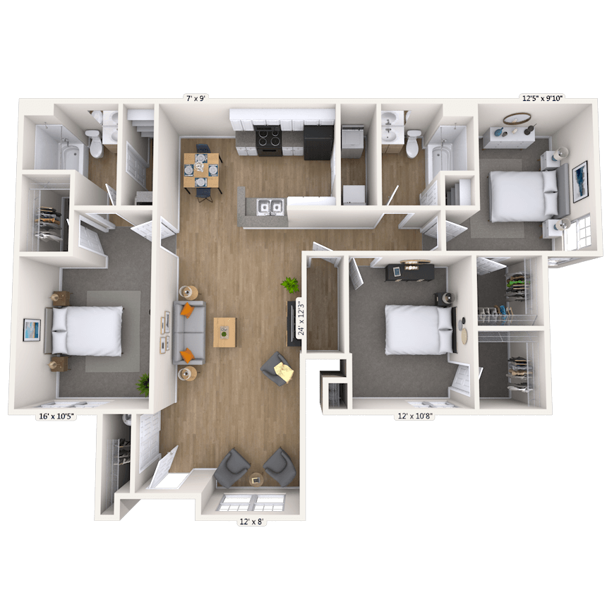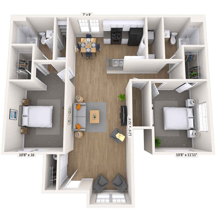 Modelo de apartamento: 11ADesde $1,7581 Dormitorio, 1 Baño, 796 sq ftDisponible Ahora![]()
