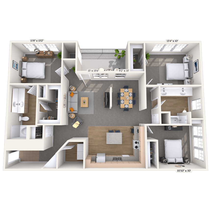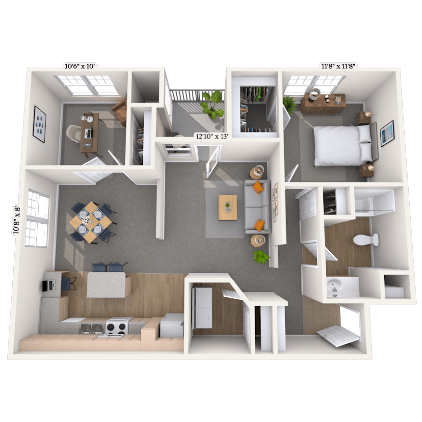 Modelo de apartamento: PineviewDesde $1,1481 Dormitorio, 1 Baño, 711-761 sq ftDisponible Ahora![]()