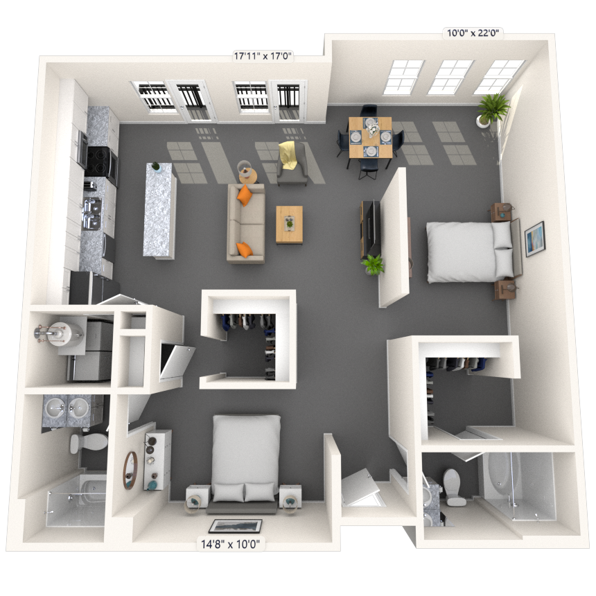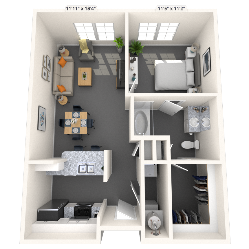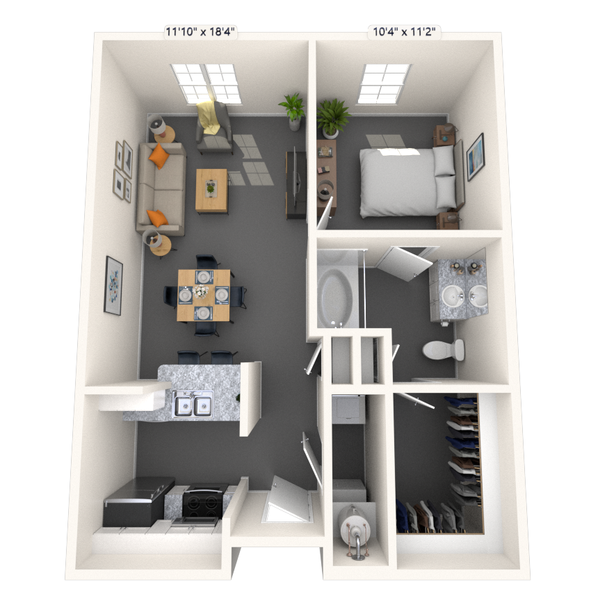 Estudio, 1 Baño, 665-700 pies²Disponible AhoraGalería del Modelo