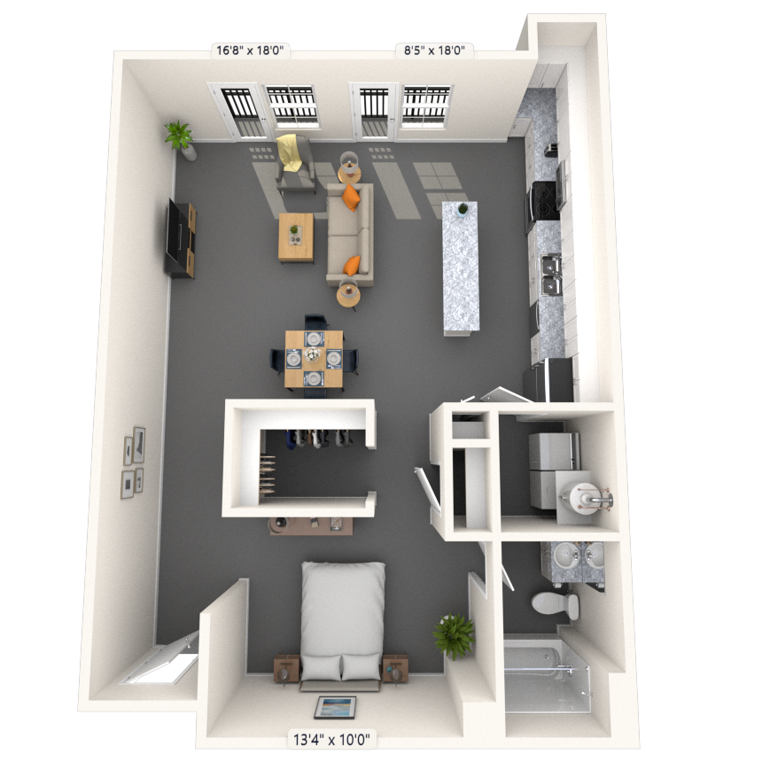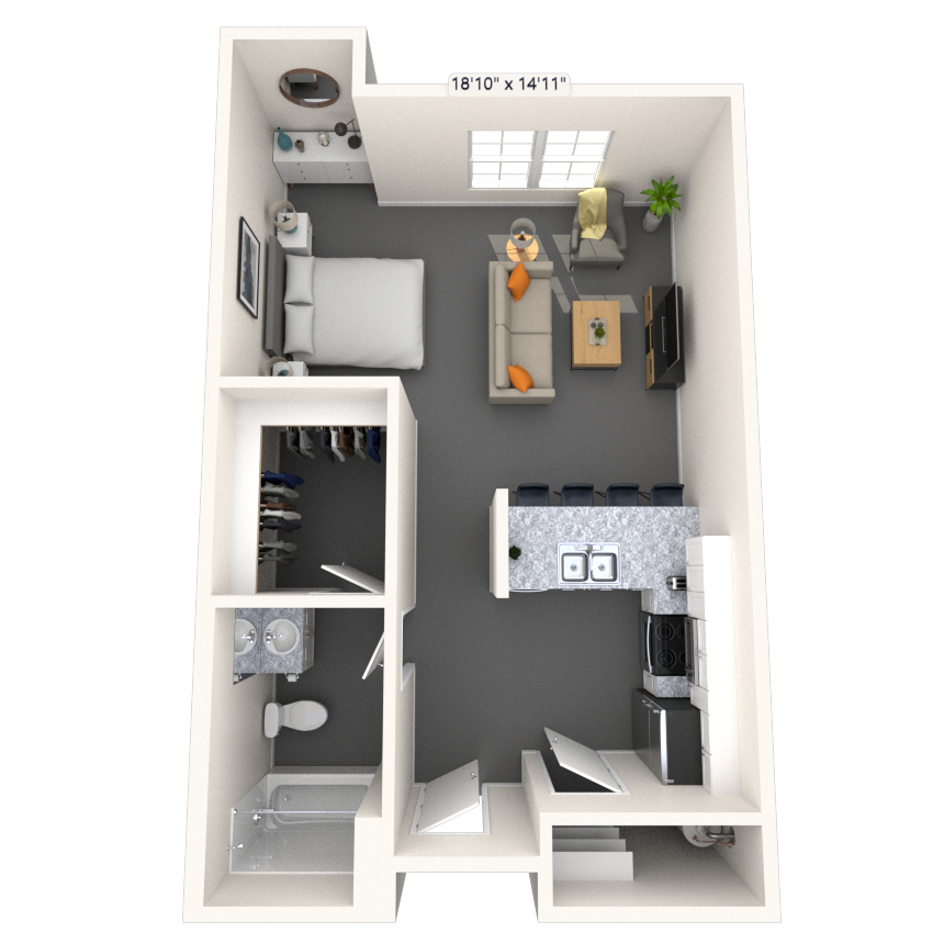 Estudio, 1 Baño, 581-583 pies²Disponible AhoraGalería del Modelo