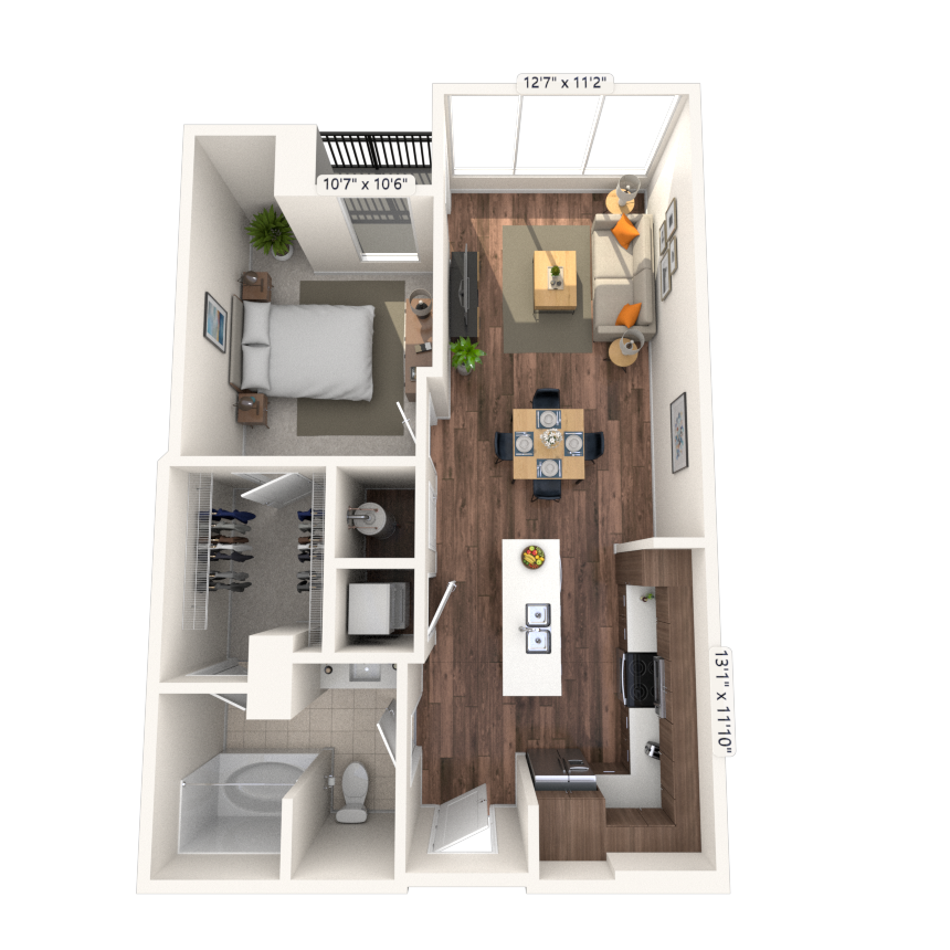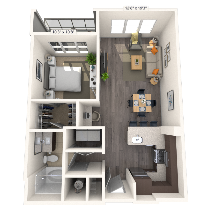 Estudio, 1 Baño, 615-645 pies²Disponible AhoraGalería del Modelo
